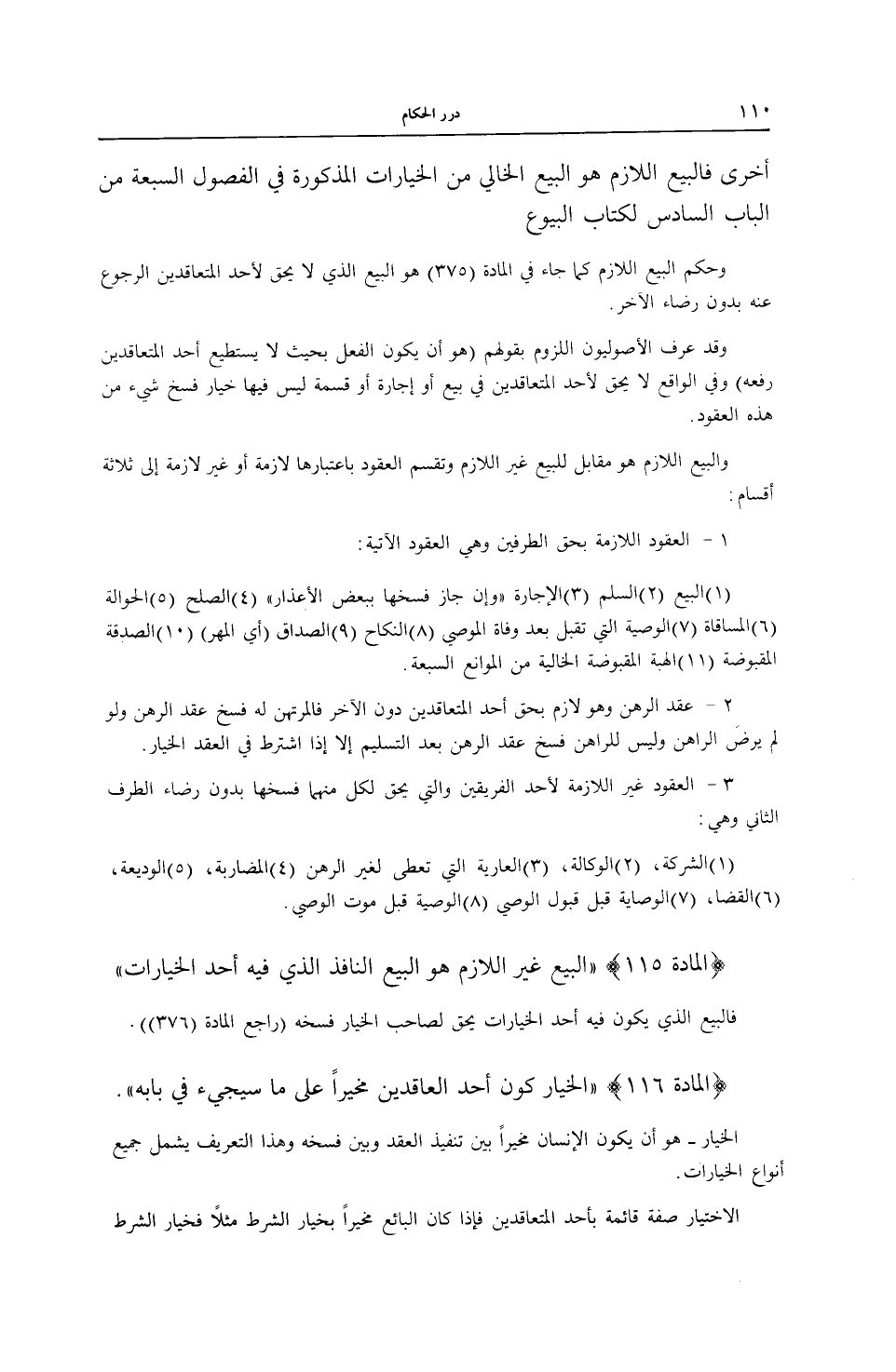 (الْمَادَّةُ 115) (الْبَيْعُ غَيْرُ اللَّازِمِ هُوَ الْبَيْعُ النَّافِذُ الَّذِي فِيهِ أَحَدُ الْخِيَارَاتِ) فَالْبَيْعُ الَّذِي يَكُونُ فِيهِ أَحَدُ الْخِيَارَاتِ يَحِقُّ لِصَاحِبِ الْخِيَارِ فَسْخُهُ (رَاجِعْ الْمَادَّةَ (376)) .