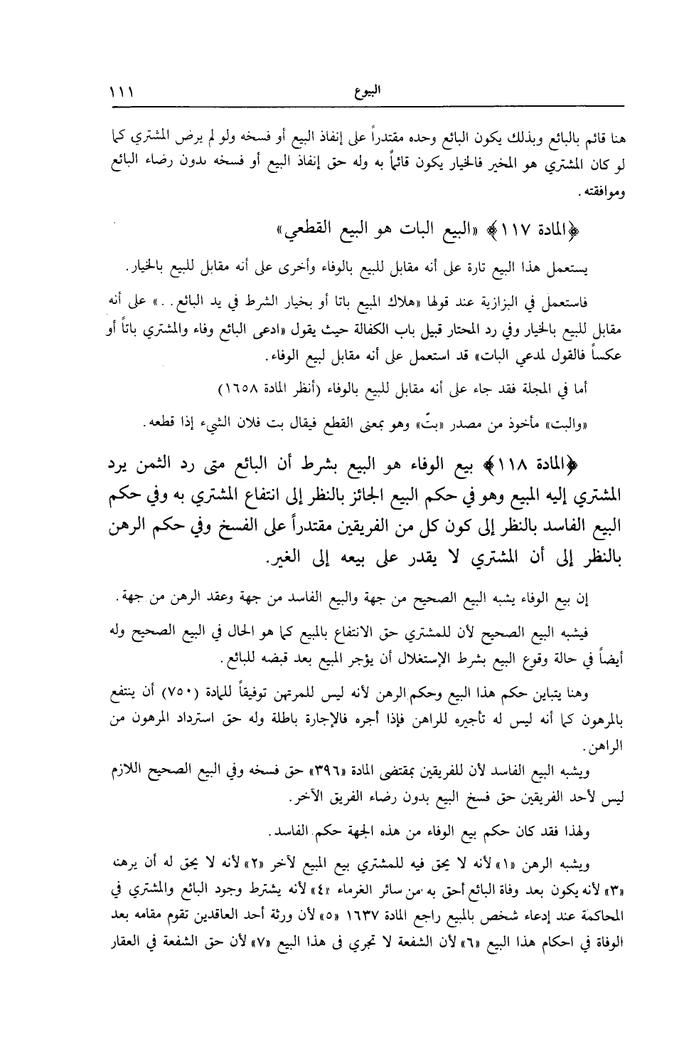 [ (الْمَادَّةُ 117) الْبَيْعُ الْبَاتُّ هُوَ الْبَيْعُ الْقَطْعِيُّ]