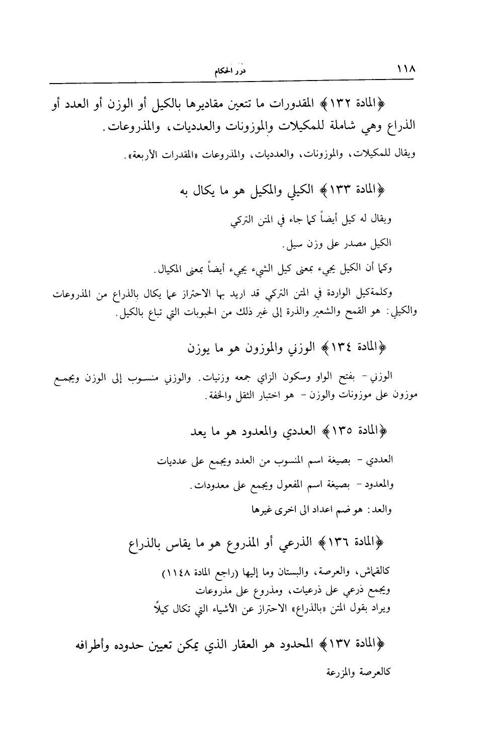 [ (الْمَادَّةُ 132) الْمَقْدُورَاتُ مَا تَتَعَيَّنُ مَقَادِيرُهَا بِالْكَيْلِ أَوْ الْوَزْنِ أَوْ الْعَدَدِ أَوْ الذِّرَاعِ]