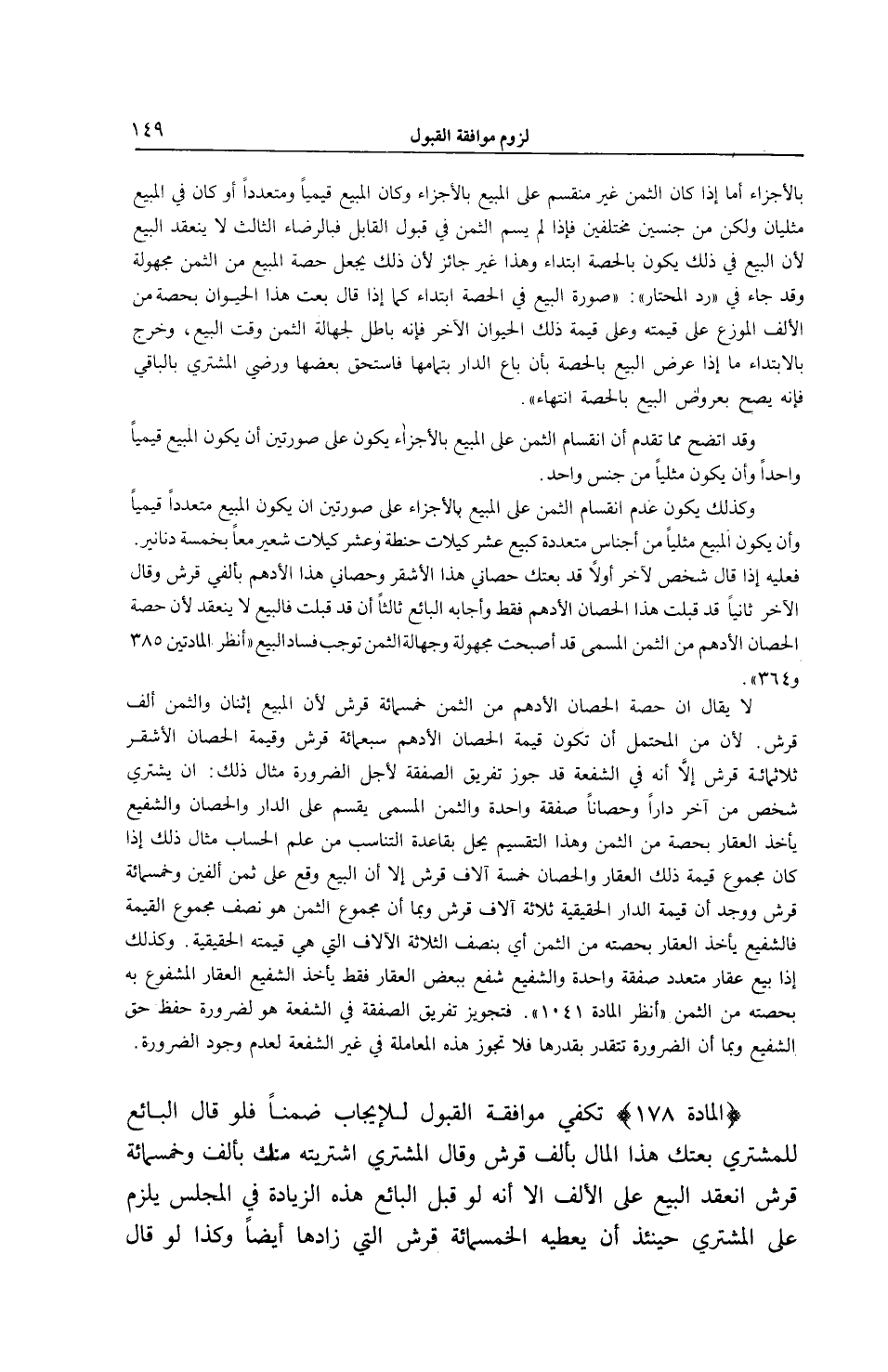 [ (الْمَادَّةُ 178) مُوَافَقَةُ الْقَبُولِ لِلْإِيجَابِ ضِمْنًا]