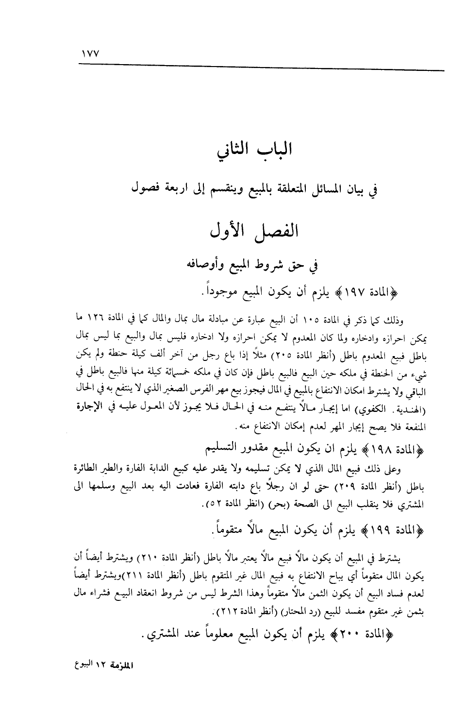 [ (الْمَادَّةُ 199) كون الْمَبِيع مَالًا مُتَقَوِّمًا]