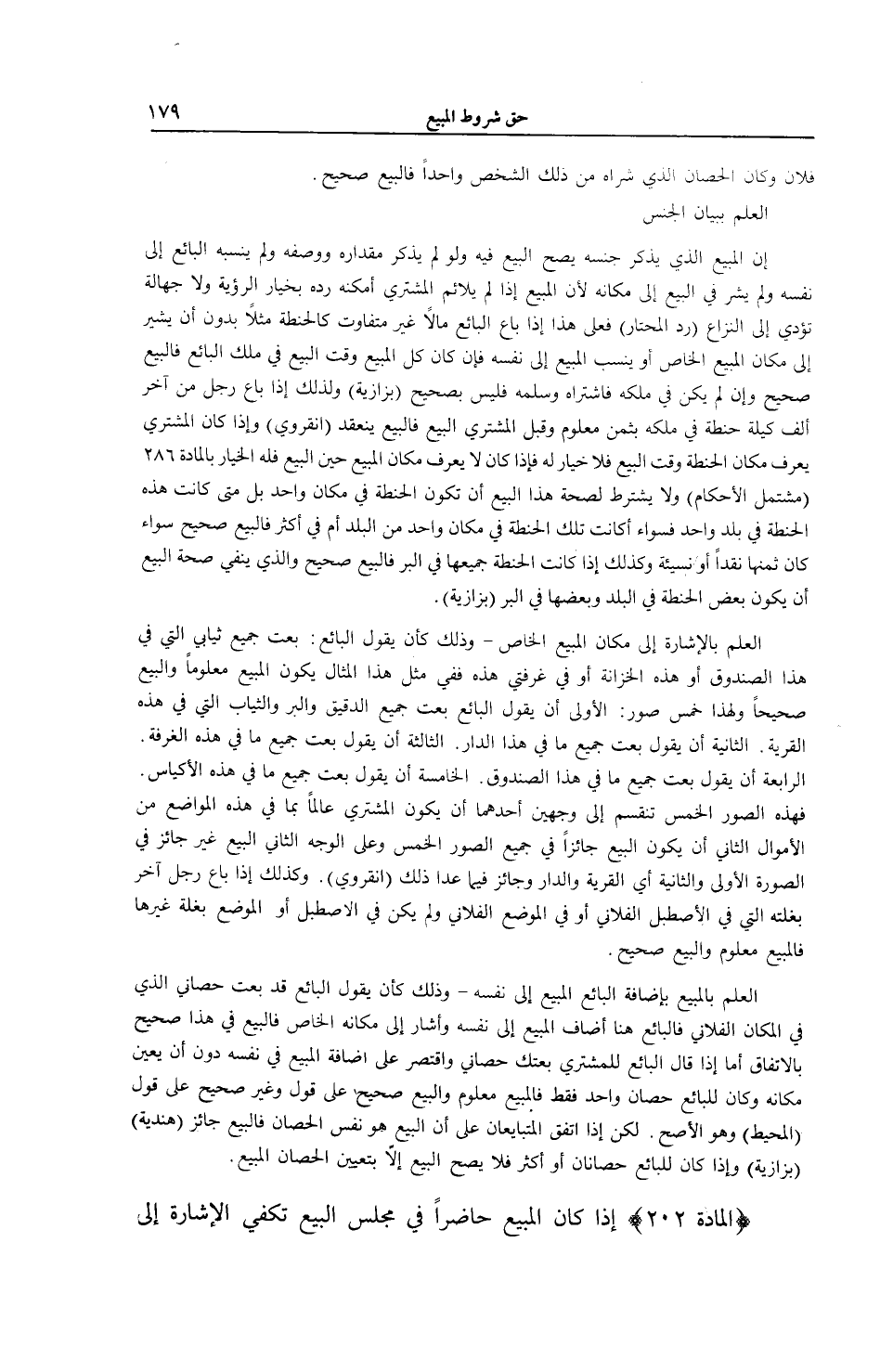 [ (الْمَادَّةُ 202) إذَا كَانَ الْمَبِيعُ حَاضِرًا فِي مَجْلِسِ الْبَيْعِ تَكْفِي الْإِشَارَةُ]
