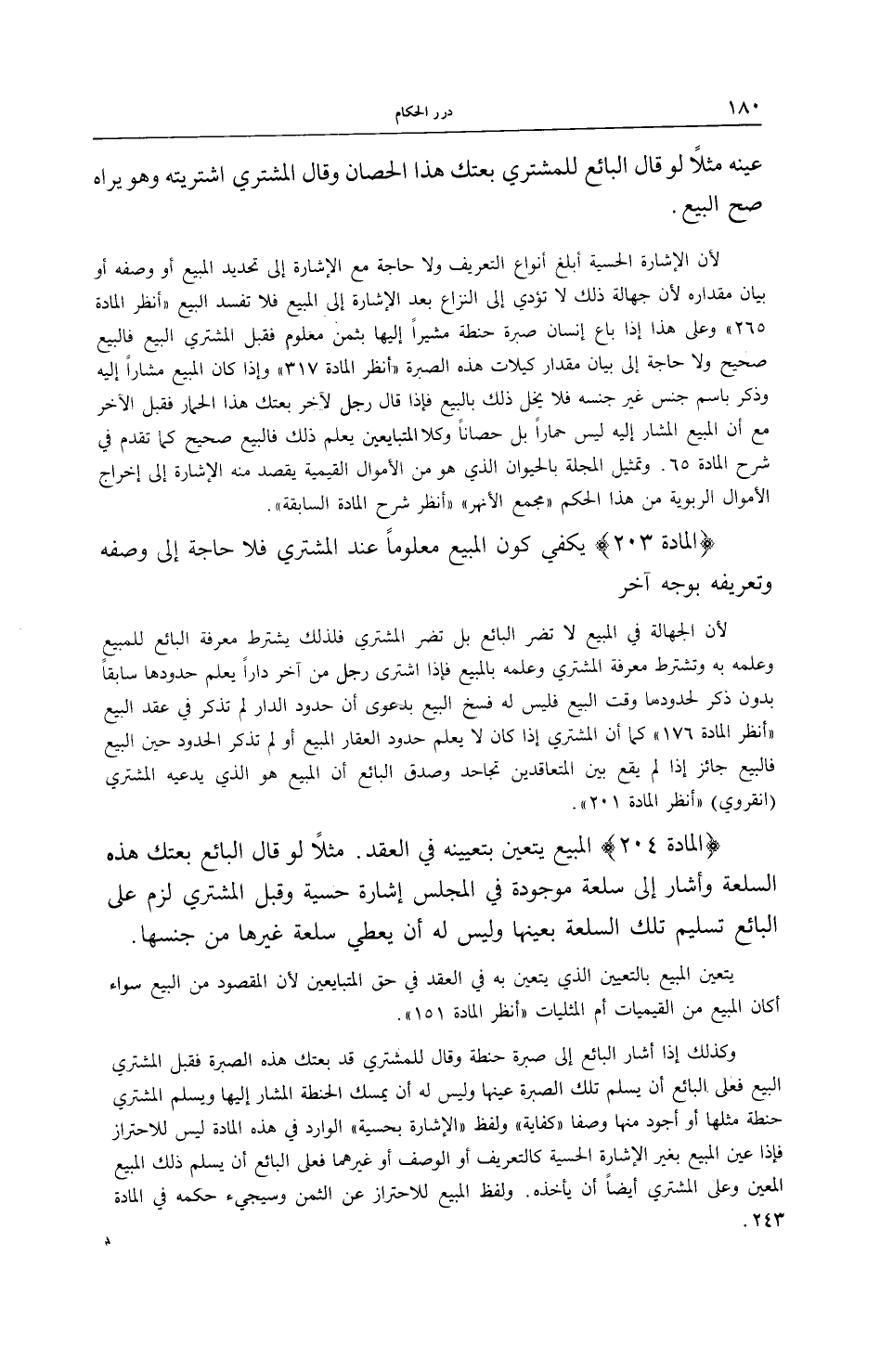 [ (الْمَادَّةُ 204) الْمَبِيعُ يَتَعَيَّنُ بِتَعْيِينِهِ فِي الْعَقْدِ]