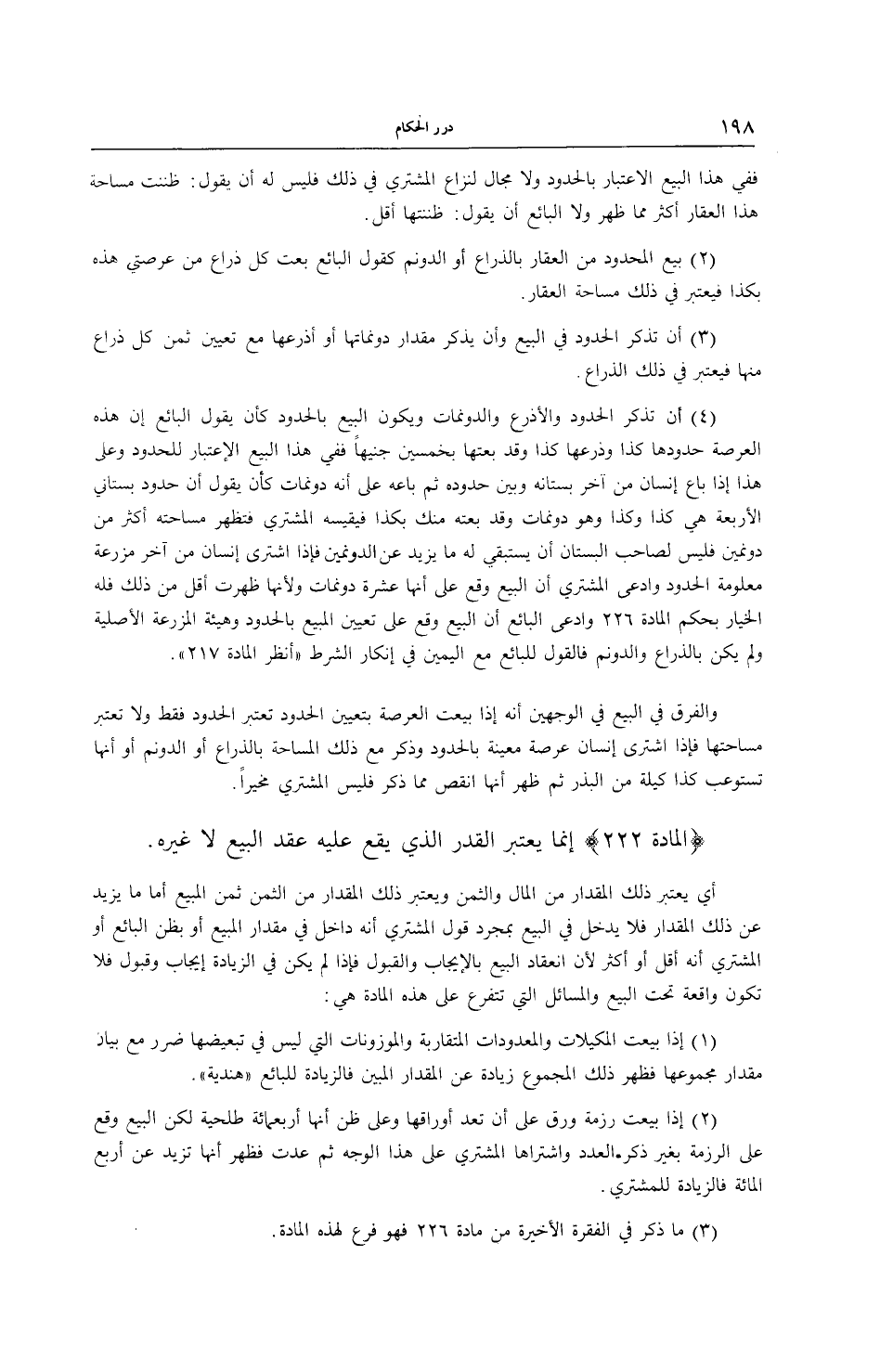 [ (الْمَادَّةُ 222) يُعْتَبَرُ الْقَدْرُ الَّذِي يَقَعُ عَلَيْهِ عَقْدُ الْبَيْعِ لَا غَيْرُهُ]