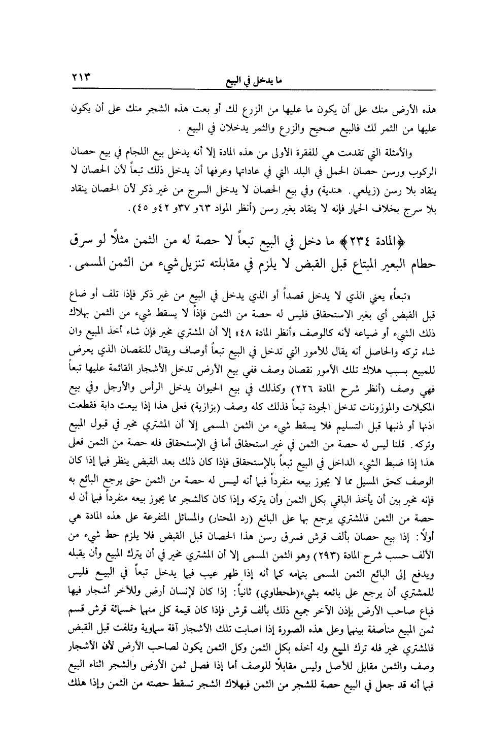 [ (الْمَادَّةُ 234) مَا دَخَلَ فِي الْبَيْعِ تَبَعًا]