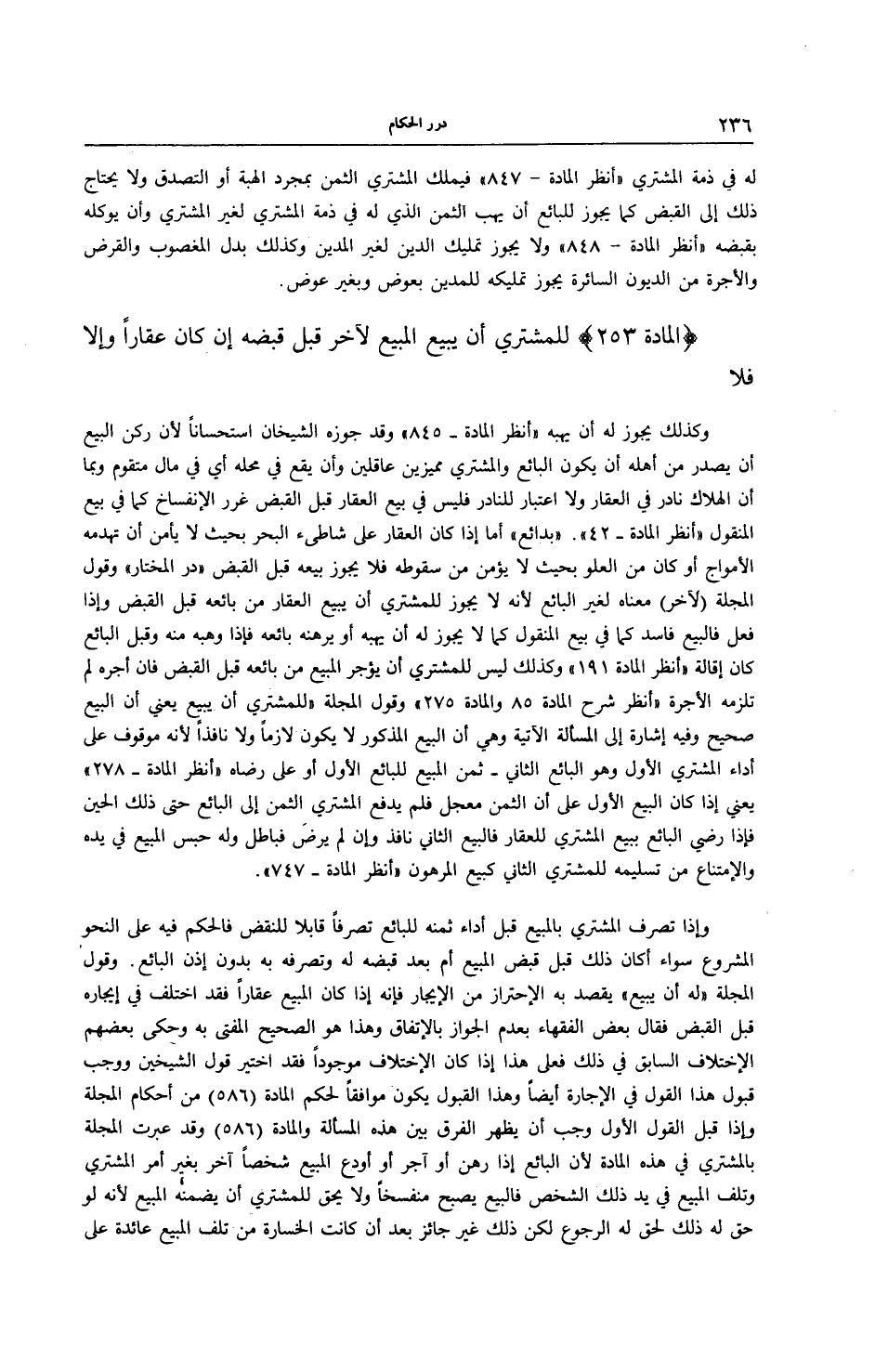 [ (الْمَادَّةُ 253) لِلْمُشْتَرِي بَيْع الْمَبِيعَ لِآخَرَ قَبْلَ قَبْضِهِ إنْ كَانَ عَقَارًا]