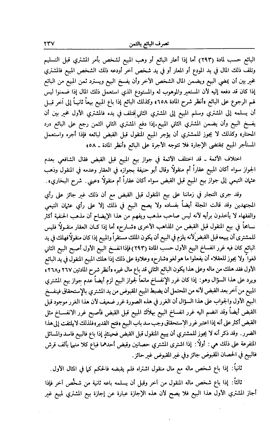 الْبَائِعِ حَسَبَ الْمَادَّةِ (293) .