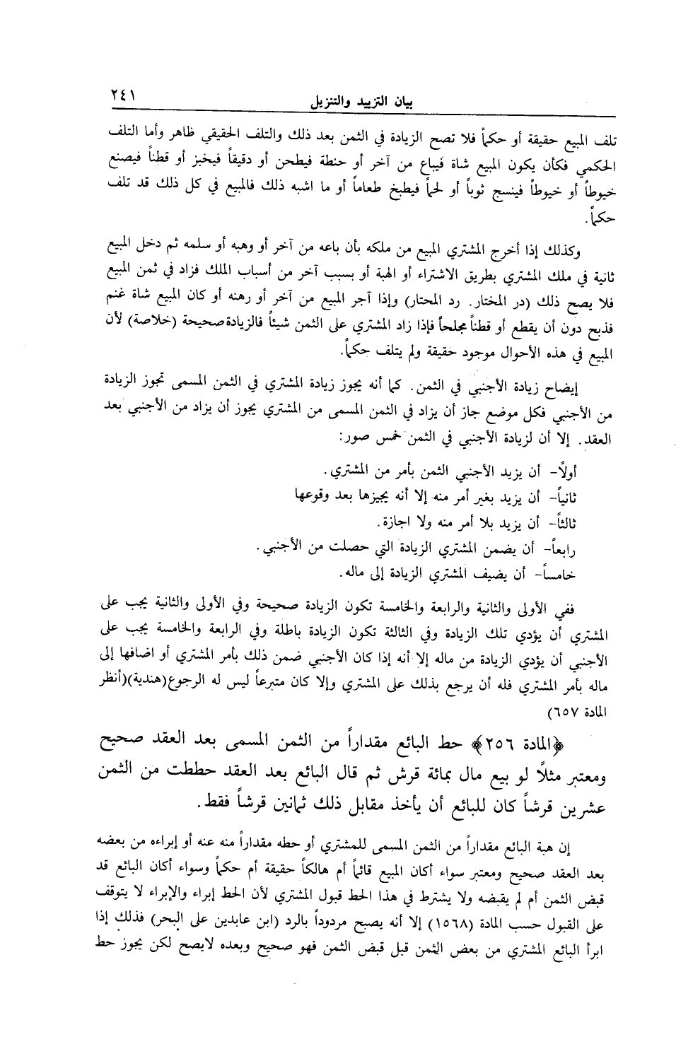 [ (الْمَادَّةُ 256) حَطُّ الْبَائِعِ مِقْدَارًا مِنْ الثَّمَنِ الْمُسَمَّى بَعْدَ الْعَقْدِ]