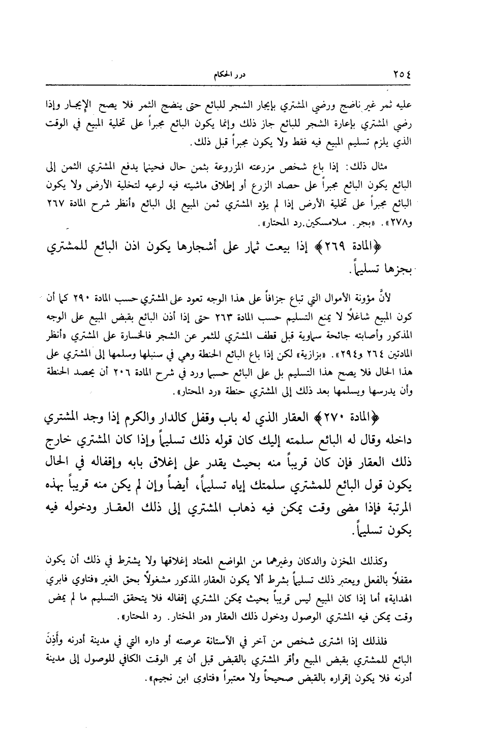 [ (الْمَادَّةُ 270) إذَا وُجِدَ الْمُشْتَرِي دَاخِل الْعَقَار وَقَالَ لَهُ الْبَائِعُ سَلَّمْته إلَيْك]