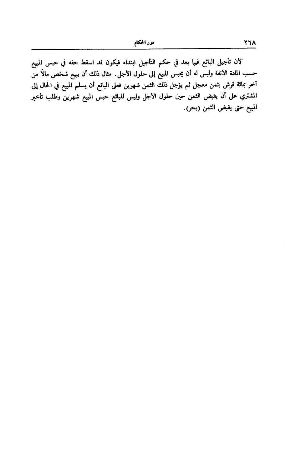 لِأَنَّ تَأْجِيلَ الْبَائِعِ فِيمَا بَعْدُ فِي حُكْمِ التَّأْجِيلِ ابْتِدَاءً فَيَكُونُ قَدْ أَسْقَطَ حَقَّهُ فِي حَبْسِ الْمَبِيعِ حَسَبَ الْمَادَّةِ الْآنِفَةِ وَلَيْسَ لَهُ أَنْ يَحْبِسَ الْمَبِيعَ إلَى حُلُولِ الْأَجَلِ.