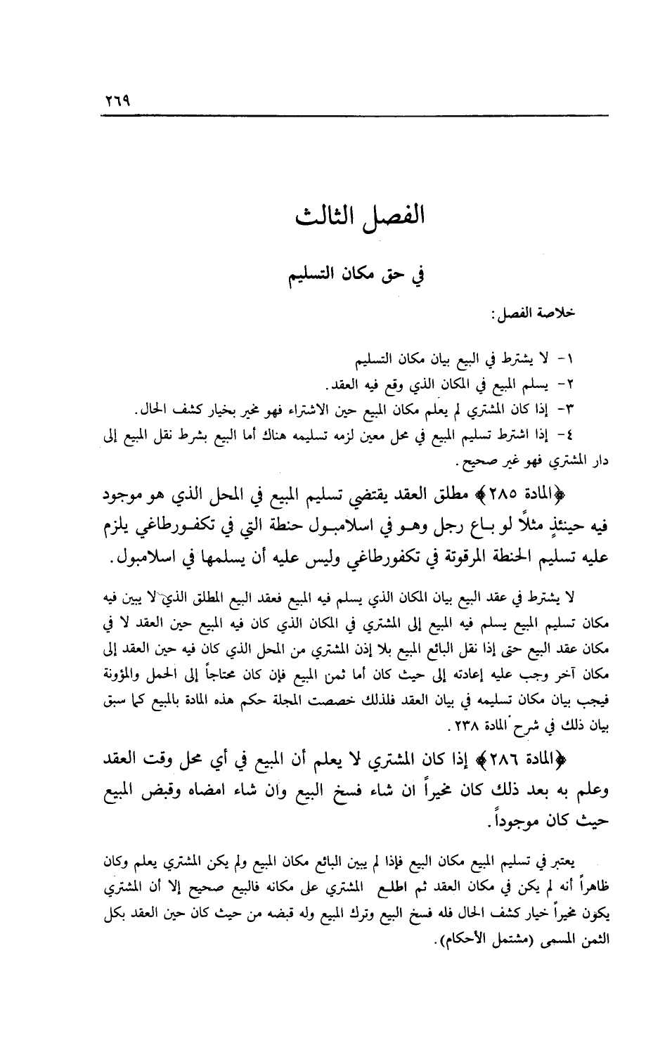 الْفَصْلُ الثَّالِثُ فِي حَقِّ مَكَانِ التَّسْلِيمِ خُلَاصَةُ الْفَصْلِ: