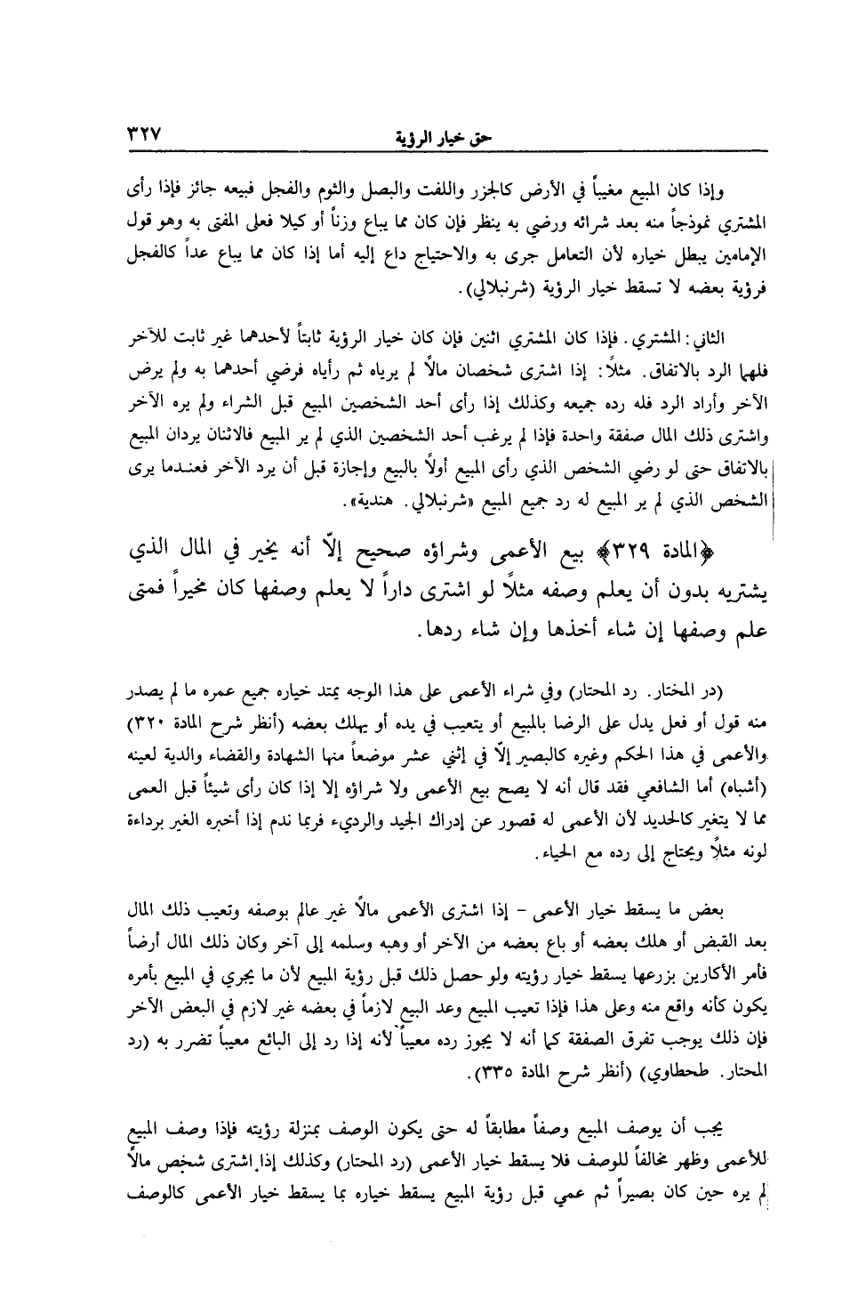 [ (الْمَادَّةُ 329) بَيْعُ الْأَعْمَى وَشِرَاؤُهُ]