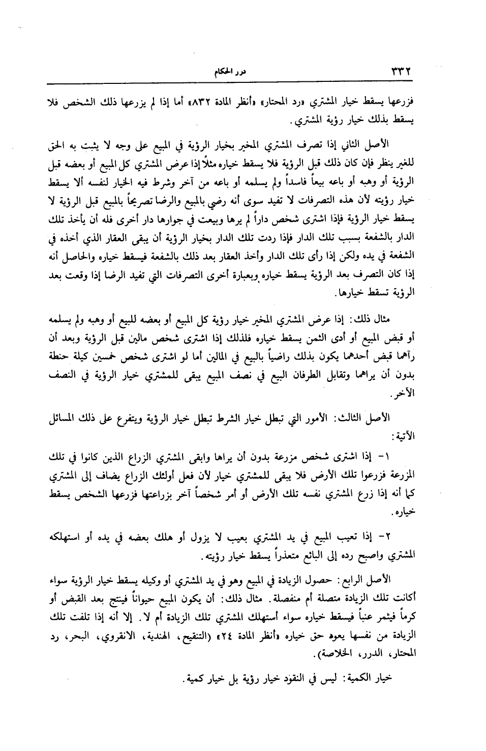 فَزَرَعَهَا يَسْقُطُ خِيَارُ الْمُشْتَرِي رَدُّ الْمُحْتَارِ " " اُنْظُرْ الْمَادَّةَ 832 " أَمَّا إذَا لَمْ يَزْرَعْهَا ذَلِكَ الشَّخْصُ فَلَا يَسْقُطُ بِذَلِكَ خِيَارُ رُؤْيَةِ الْمُشْتَرِي.