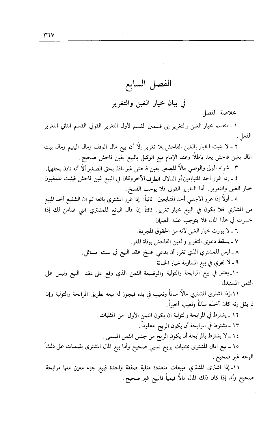 خُلَاصَةُ الْفَصْلِ 1 - يَنْقَسِمُ خِيَارُ الْغَبَنِ وَالتَّغْرِيرِ إلَى قِسْمَيْنِ: