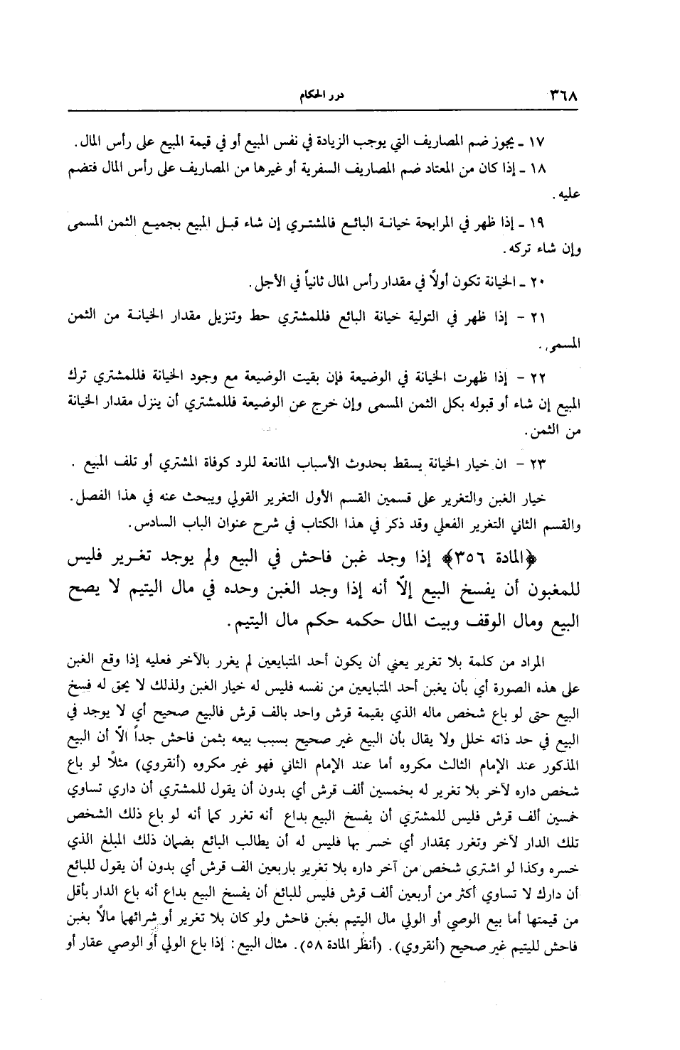 [ (الْمَادَّةُ 356) وُجِدَ غَبَنٌ فَاحِشٌ فِي الْبَيْعِ وَلَمْ يُوجَدْ تَغْرِيرٌ]