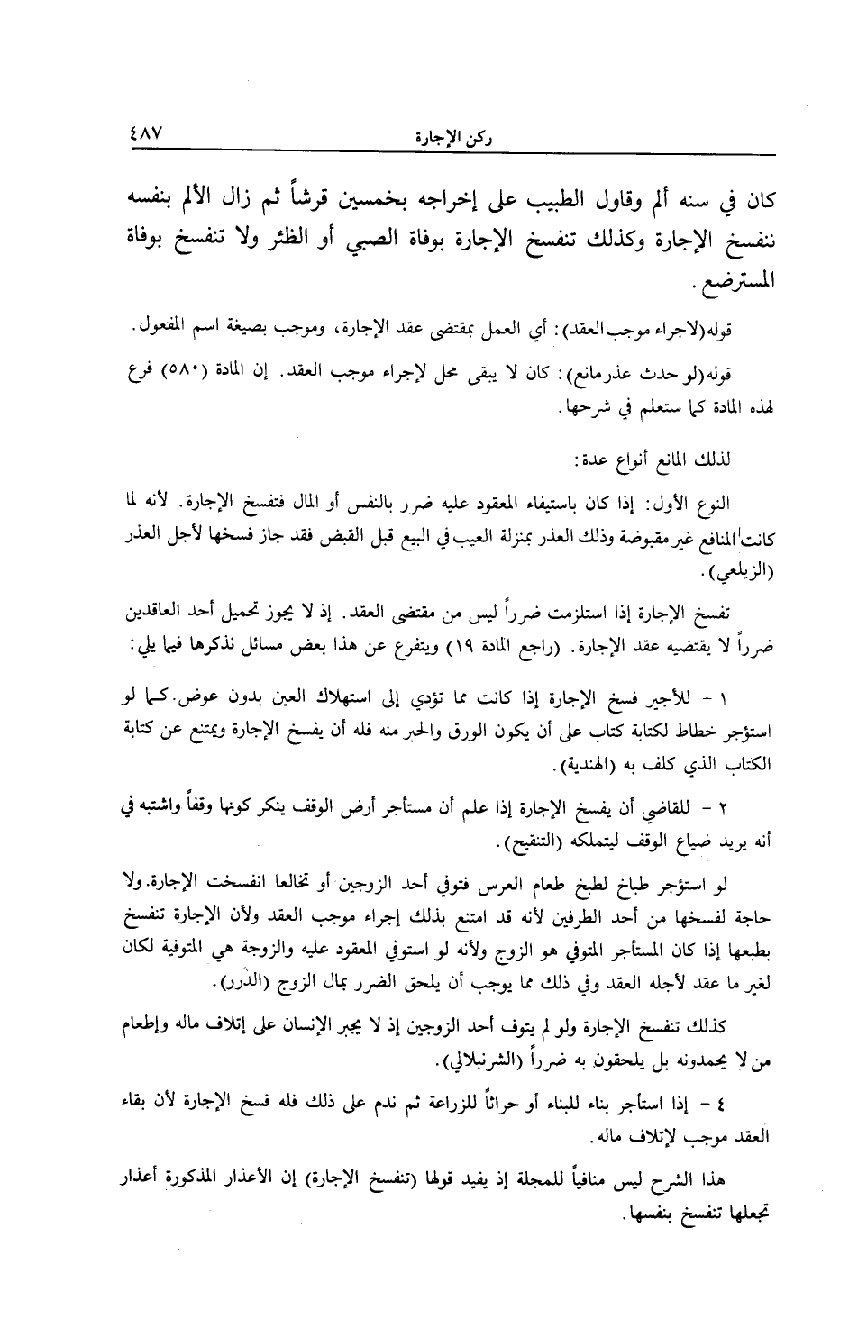 هَذَا الشَّرْحُ لَيْسَ مُنَافِيًا لِلْمِجَلَّةِ إذْ يُفِيدُ قَوْلَهَا (تَنْفَسِخُ الْإِجَارَةُ) إنَّ الْأَعْذَارَ الْمَذْكُورَةَ أَعْذَارٌ تَجْعَلُهَا تَنْفَسِخُ بِنَفْسِهَا.