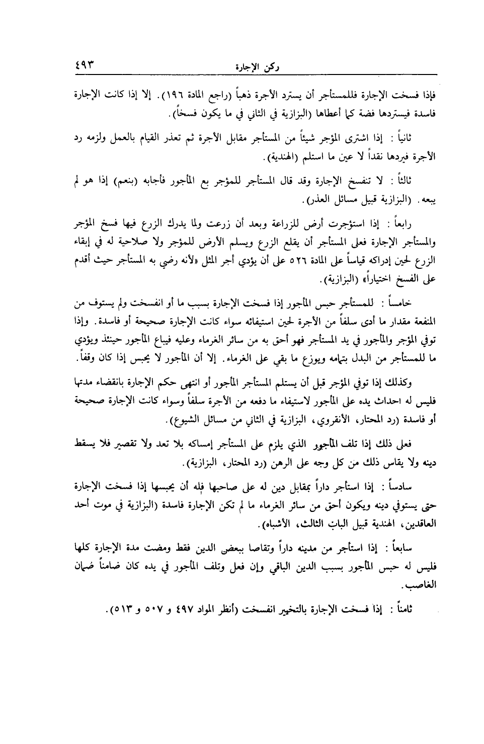 ثَامِنًا: إذَا فُسِخَتْ الْإِجَارَةُ بِالتَّخْيِيرِ انْفَسَحَتْ (اُنْظُرْ الْمَوَادَّ 497 و 570 و 513)