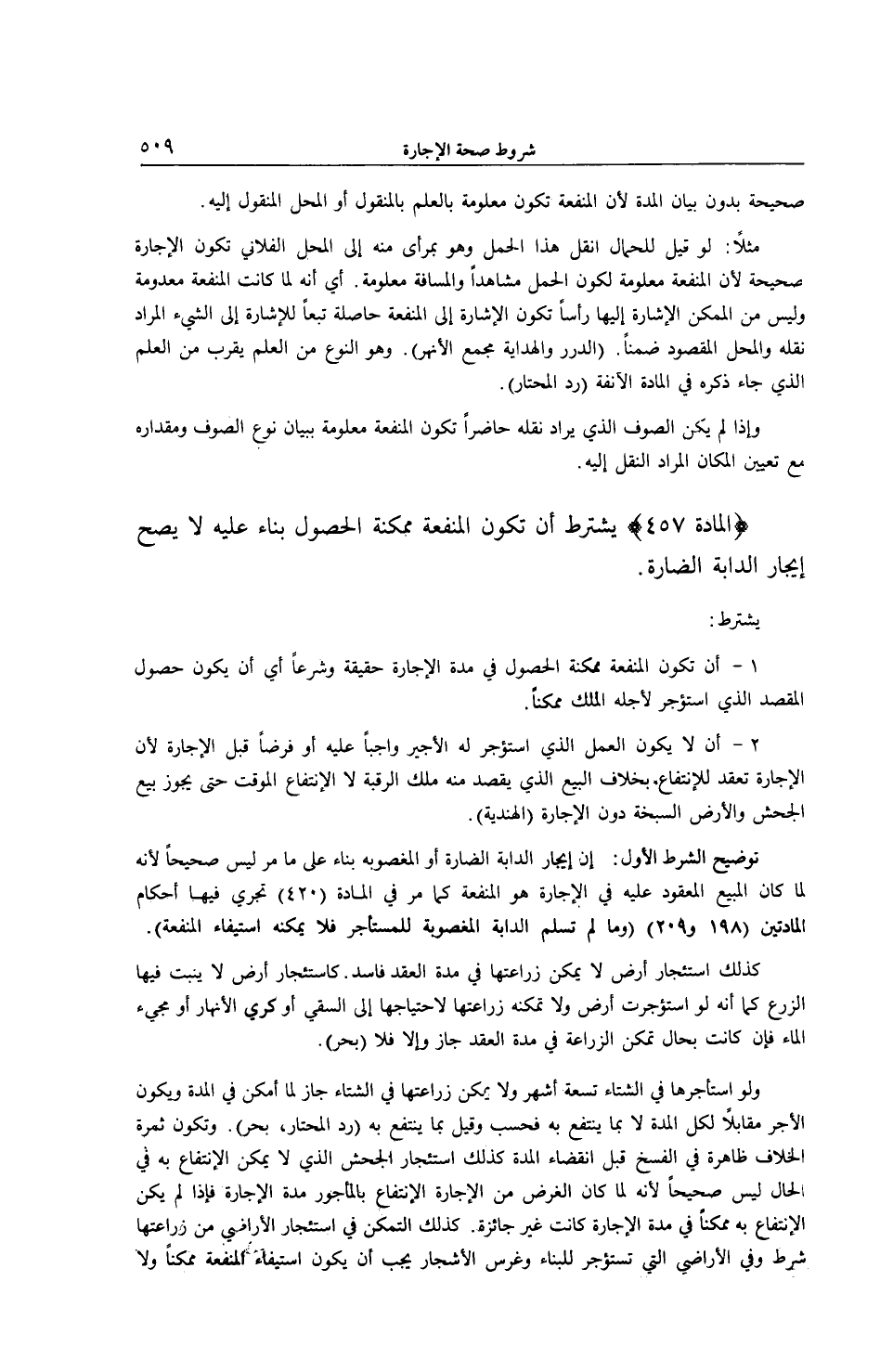 (الْمَادَّةُ 457) يُشْتَرَطُ أَنْ تَكُونَ الْمَنْفَعَةُ مُمْكِنَةَ الْحُصُولِ بِنَاءً عَلَيْهِ لَا يَصِحُّ إيجَارُ الدَّابَّةِ الضَّارَّةِ.