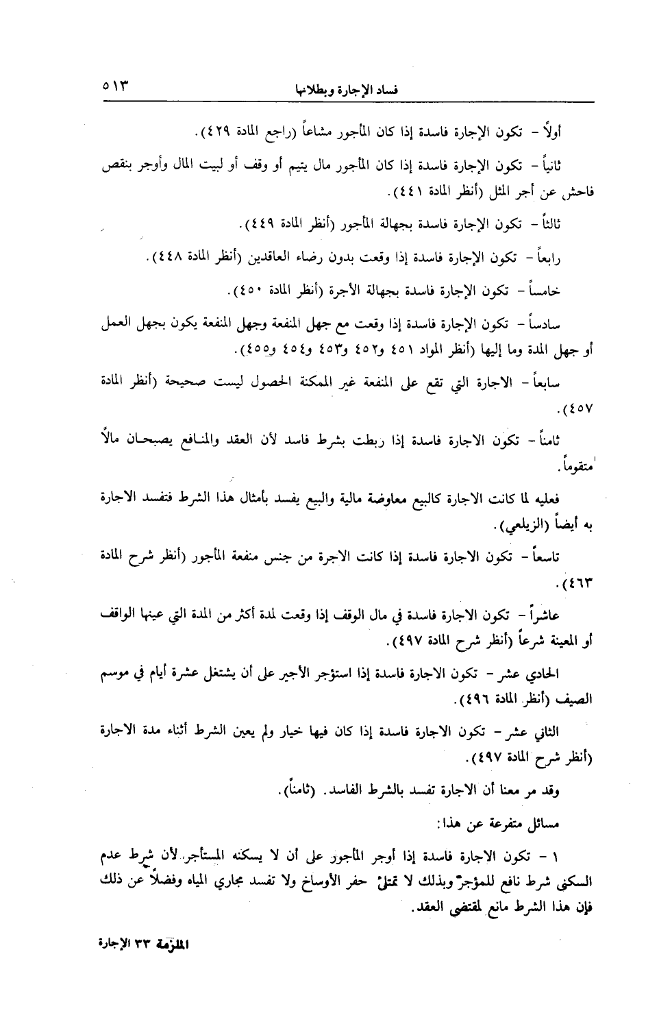 الْحَادِيَ عَشَرَ - تَكُونُ الْإِجَارَةُ فَاسِدَةً إذَا اُسْتُؤْجِرَ الْأَجِيرُ عَلَى أَنْ يَشْتَغِلَ عَشَرَةَ أَيَّامٍ فِي مَوْسِمِ الصَّيْفِ (اُنْظُرْ الْمَادَّةَ 496) الثَّانِيَ عَشَرَ - تَكُونُ الْإِجَارَةُ فَاسِدَةً إذَا كَانَ فِيهَا خِيَارٌ وَلَمْ يُعَيَّنْ الشَّرْطُ أَثْنَاءَ مُدَّةِ الْإِجَارَةِ (اُنْظُرْ شَرْحَ الْمَادَّةِ 497) .