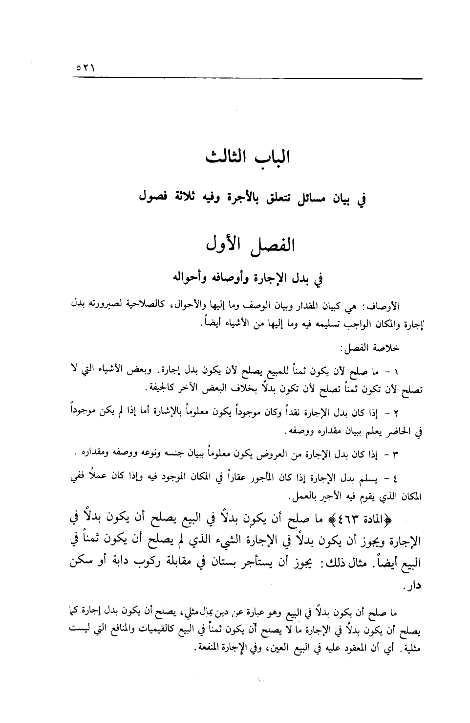 (الْمَادَّةُ 6463) مَا صَلُحَ أَنْ يَكُونَ بَدَلًا فِي الْبَيْعِ يَصْلُحُ أَنْ يَكُونَ بَدَلًا فِي الْإِجَارَةِ وَيَجُوزُ أَنْ يَكُونَ بَدَلًا فِي الْإِجَارَةِ الشَّيْءُ الَّذِي لَمْ يَصْلُحْ أَنْ يَكُونَ ثَمَنًا فِي الْبَيْعِ أَيْضًا.