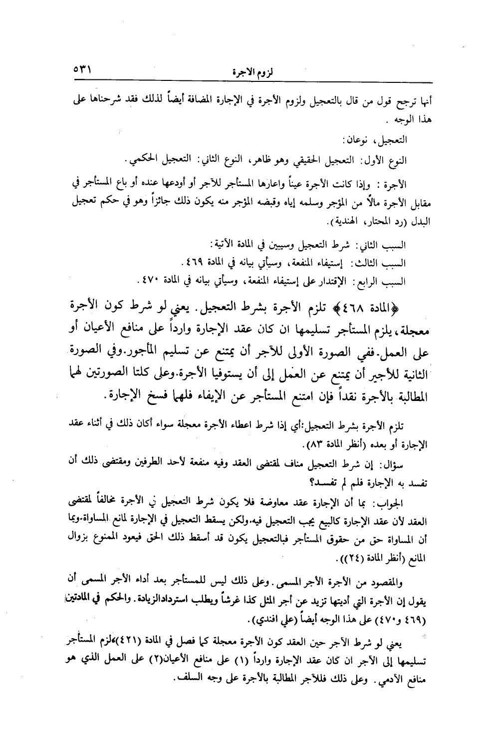 [ (الْمَادَّةُ 468) تَلْزَمُ الْأُجْرَةُ بِشَرْطِ التَّعْجِيلِ]