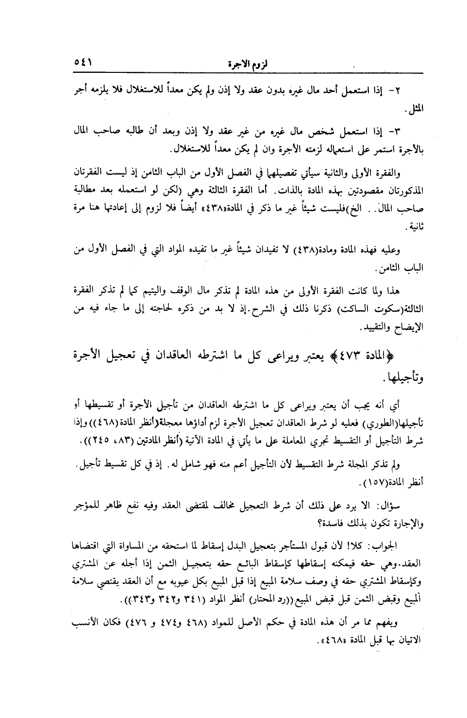 وَيُفْهَمُ مِمَّا مَرَّ أَنَّ هَذِهِ الْمَادَّةَ فِي حُكْمِ الْأَصْلِ لِلْمَوَادِّ (468 و 474 و 476) فَكَانَ الْأَنْسَبُ الْإِتْيَانَ بِهَا قَبْلَ الْمَادَّةِ (468) .