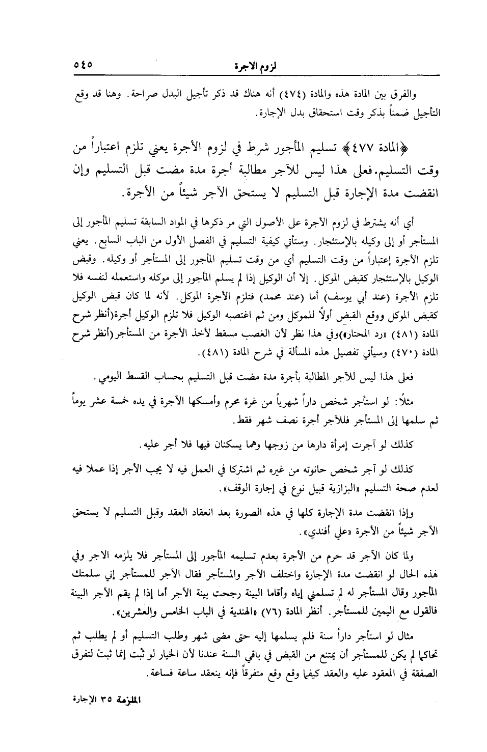 وَالْفَرْقُ بَيْنَ الْمَادَّةِ هَذِهِ وَالْمَادَّةِ (474) أَنَّهُ هُنَاكَ قَدْ ذُكِرَ تَأْجِيلُ الْبَدَلِ صَرَاحَةً.