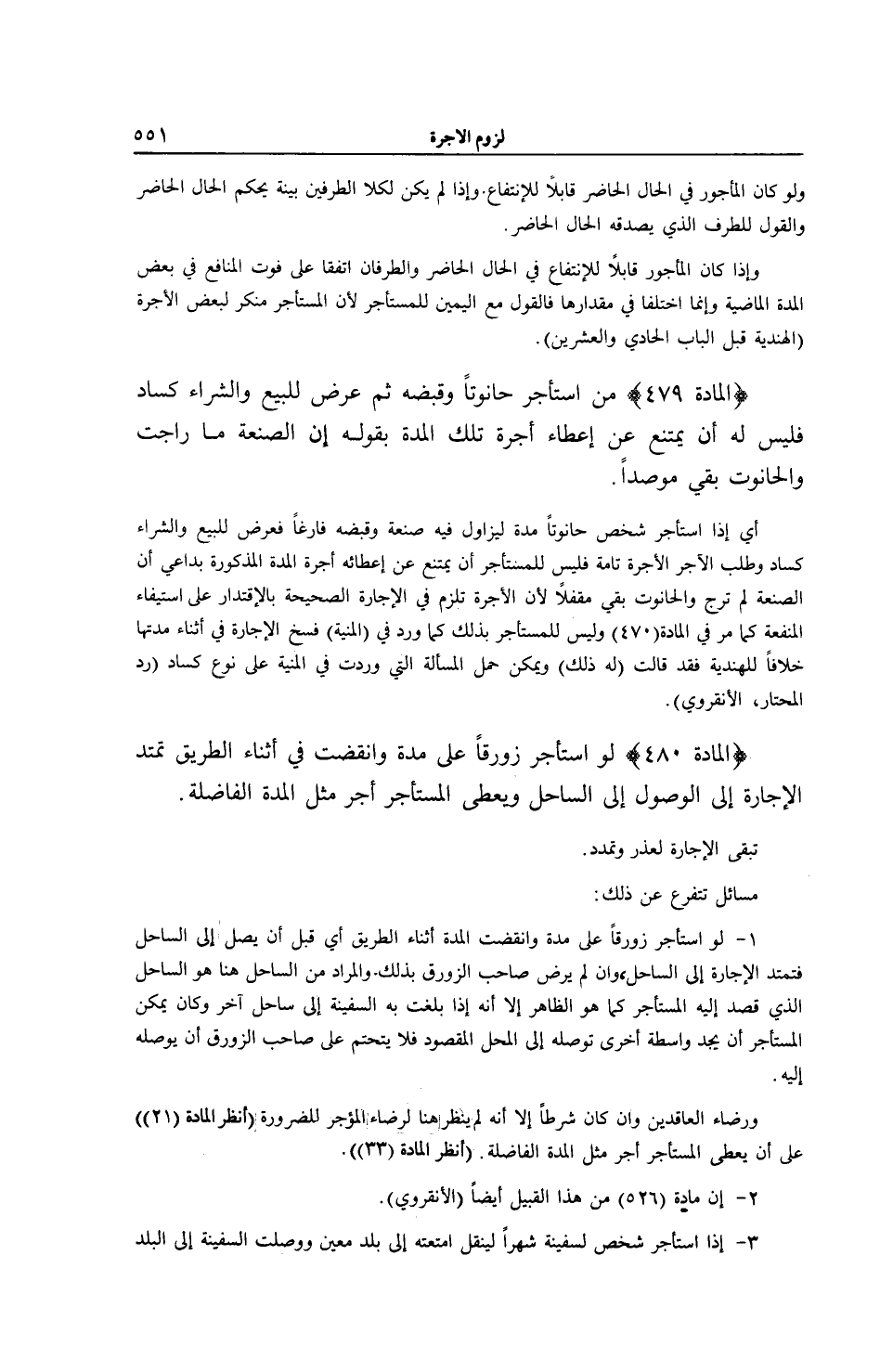 (الْمَادَّةُ 480) لَوْ اسْتَأْجَرَ زَوْرَقًا عَلَى مُدَّةٍ وَانْقَضَتْ فِي أَثْنَاءِ الطَّرِيقِ تَمْتَدُّ الْإِجَارَةُ إلَى الْوُصُولِ إلَى السَّاحِلِ وَيُعْطِي الْمُسْتَأْجِرُ أَجْرَ مِثْلِ الْمُدَّةِ الْفَاضِلَةِ. تَبْقَى الْإِجَارَةُ لِعُذْرٍ وَتُمَدَّدُ.