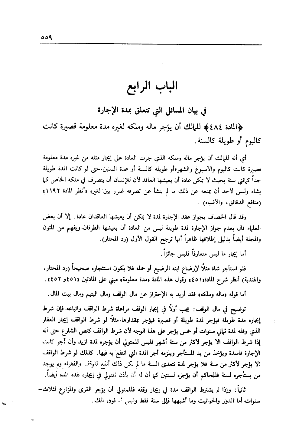 ِ (الْمَادَّةُ 484) لِلْمَالِكِ أَنْ يُؤَجِّرَ مَالَهُ وَمِلْكَهُ لِغَيْرِهِ مُدَّةً مَعْلُومَةً قَصِيرَةً كَانَتْ كَالْيَوْمِ أَوْ طَوِيلَةً كَالسَّنَةِ.