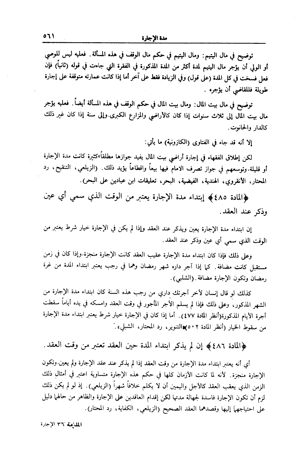 (الْمَادَّةُ 485) ابْتِدَاءُ مُدَّةِ الْإِجَارَةِ يُعْتَبَرُ مِنْ الْوَقْتِ الَّذِي سُمِّيَ أَيْ عُيِّنَ وَذُكِرَ عِنْدَ الْعَقْدِ.
