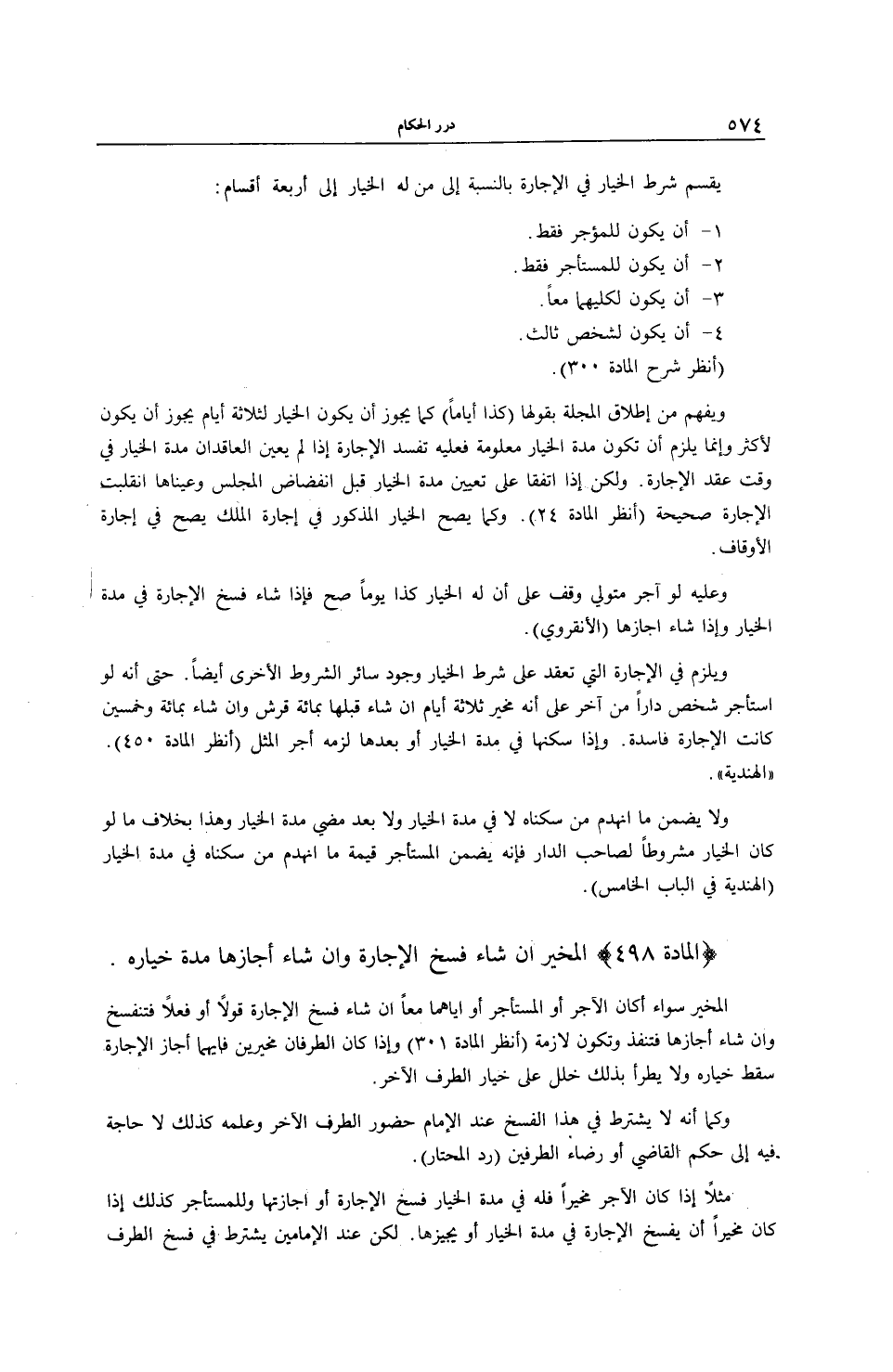 [ (الْمَادَّةُ 498) الْمُخَيَّرُ إنْ شَاءَ فَسَخَ الْإِجَارَةَ وَإِنْ شَاءَ أَجَازَهَا مُدَّةَ خِيَارِهِ]
