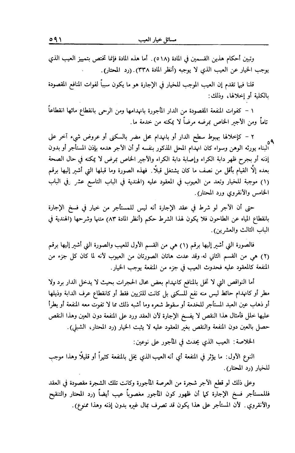 أَمَّا هَذِهِ الْمَادَّةُ فَإِنَّمَا تَخْتَصُّ بِتَمْيِيزِ الْعَيْبِ الَّذِي يُوجِبُ الْخِيَارَ عَنْ الْعَيْبِ الَّذِي لَا يُوجِبُهُ (اُنْظُرْ الْمَادَّةَ 338) (رَدُّ الْمُحْتَارِ) .