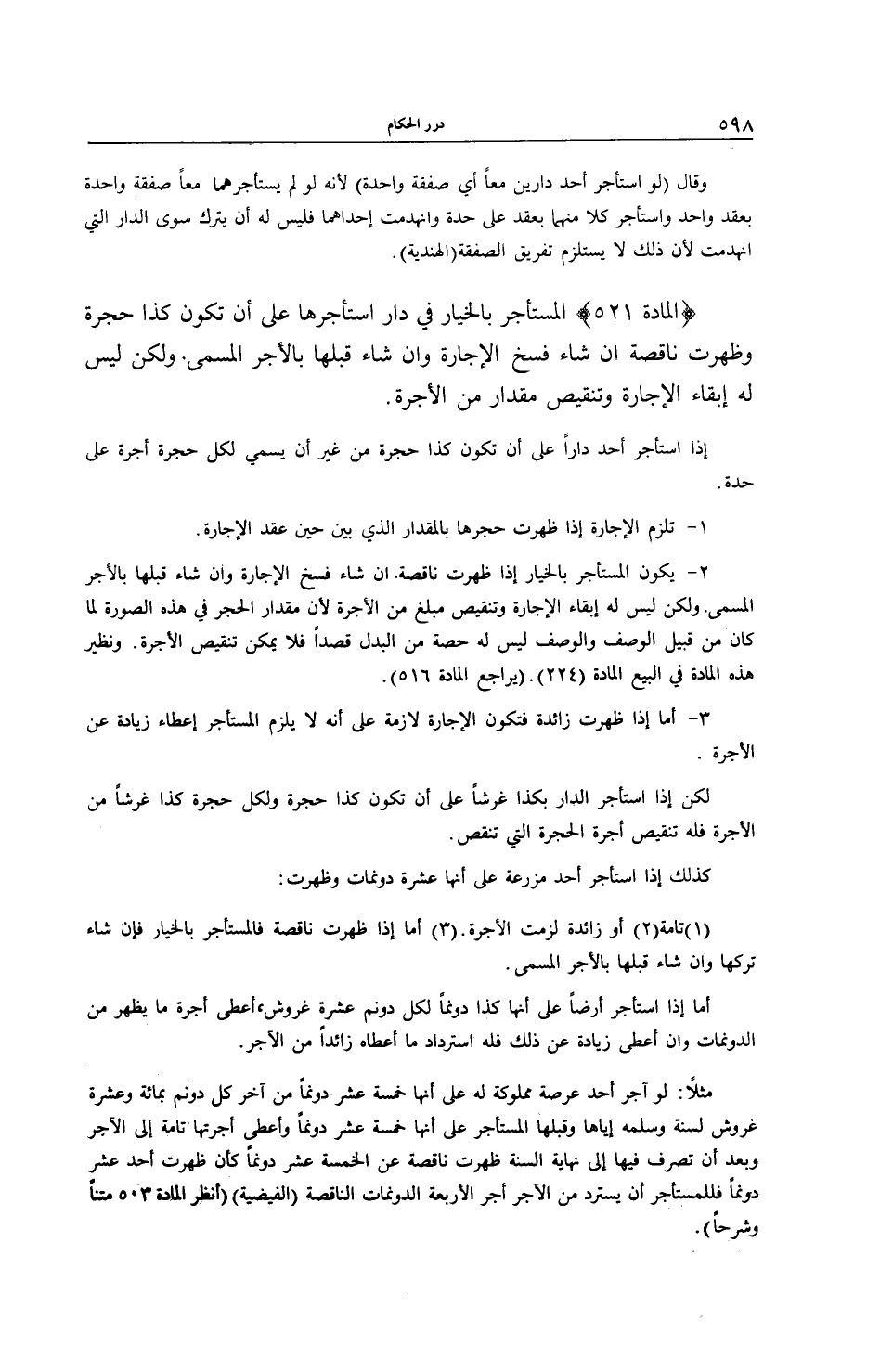 [ (الْمَادَّةُ 521) الْمُسْتَأْجِرُ بِالْخِيَارِ فِي دَارٍ اسْتَأْجَرَهَا عَلَى أَنْ تَكُونَ كَذَا حُجْرَةً وَظَهَرَتْ نَاقِصَةً]