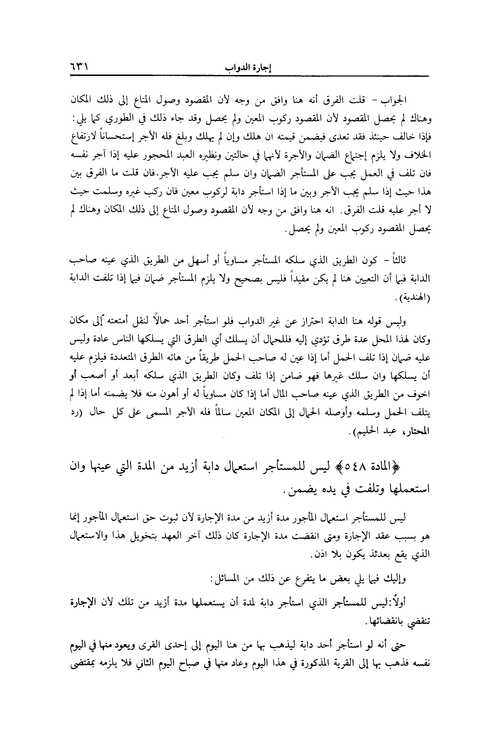 [ (الْمَادَّةُ 548) لَيْسَ لِلْمُسْتَأْجِرِ اسْتِعْمَالُ دَابَّةٍ أَزْيَدَ مِنْ الْمُدَّةِ الَّتِي عَيَّنَهَا]