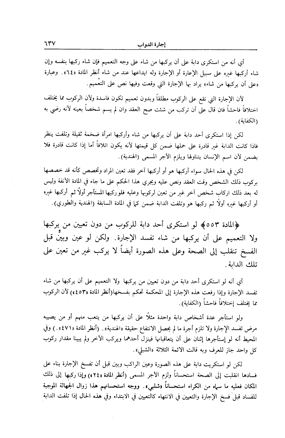 [ (الْمَادَّةُ 553) اسْتَكْرَى أَحَدٌ دَابَّةً لِلرُّكُوبِ مِنْ دُونِ تَعْيِينِ مَنْ يَرْكَبُهَا]