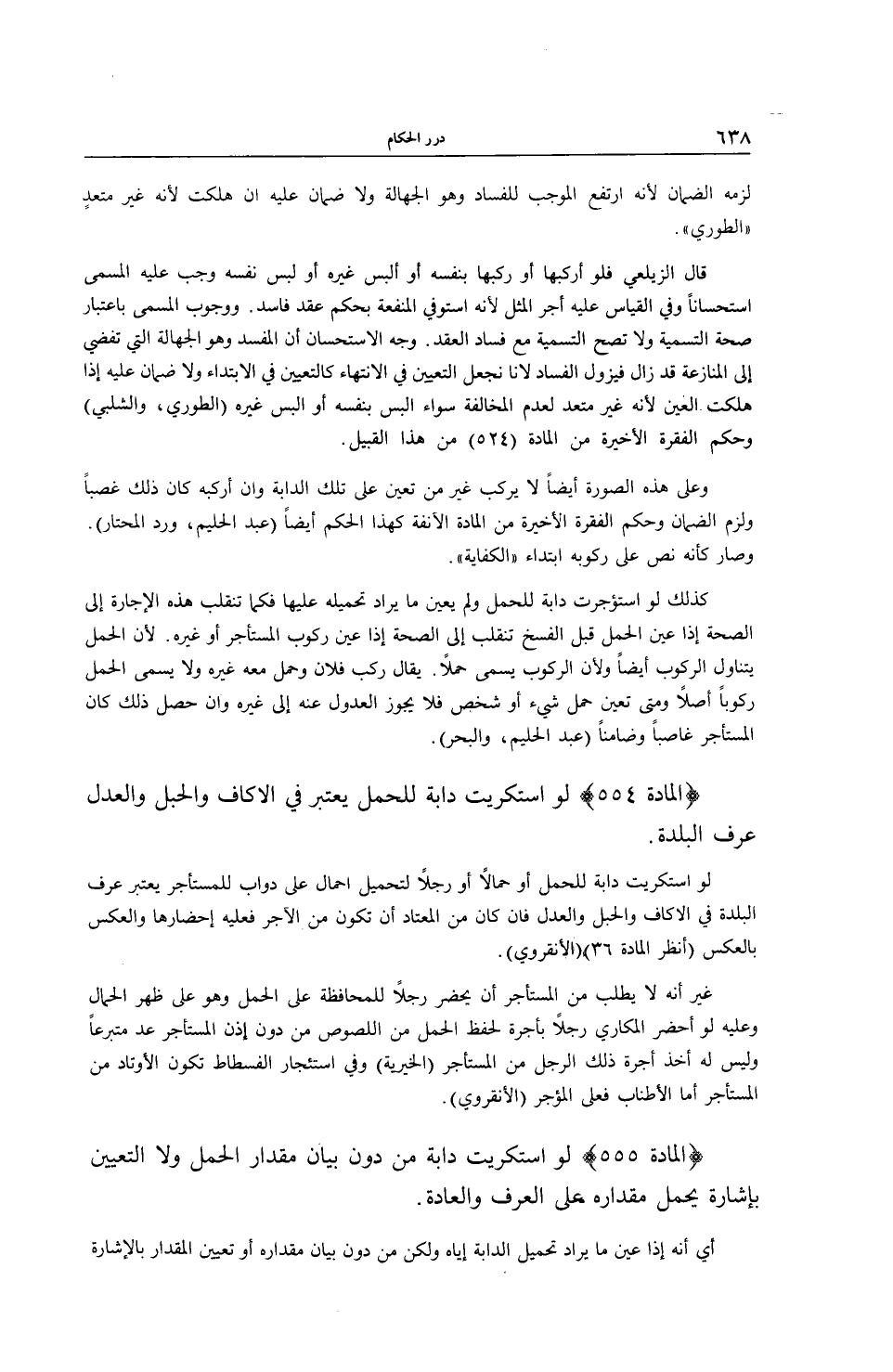 [ (الْمَادَّةُ 554) اُسْتُكْرِيَتْ دَابَّةٌ لِلْحَمْلِ]