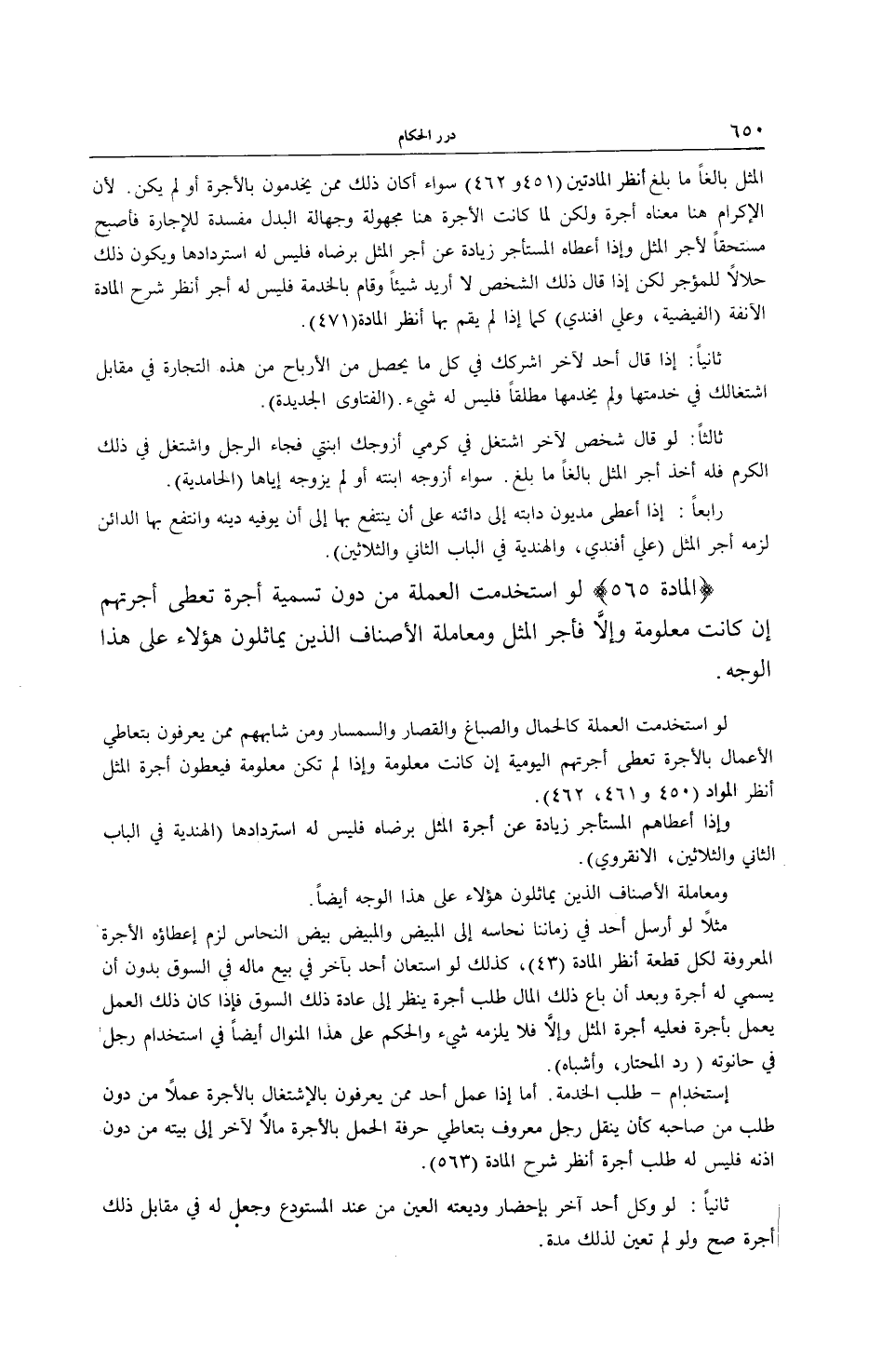 [ (الْمَادَّةُ 565) لَوْ اُسْتُخْدِمَتْ الْعَمَلَةُ مِنْ دُونِ تَسْمِيَةِ أُجْرَةٍ]