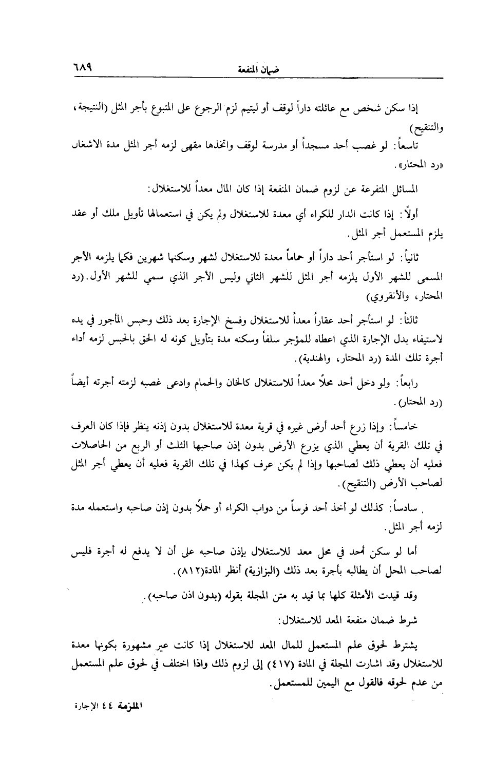 سَادِسًا: كَذَلِكَ لَوْ أَخَذَ أَحَدٌ فَرَسًا مِنْ دَوَابِّ الْكِرَاءِ أَوْ حَمْلًا بِدُونِ إذْنِ صَاحِبِهِ وَاسْتَعْمَلَهُ مُدَّةً لَزِمَهُ أَجْرُ الْمِثْلِ. أَمَّا لَوْ سَكَنَ أَحَدٌ فِي مَحِلٍّ مُعَدٍّ لِلِاسْتِغْلَالِ بِإِذْنِ صَاحِبِهِ عَلَى أَنْ لَا يَدْفَعَ لَهُ أُجْرَةً، فَلَيْسَ لِصَاحِبِ الْمَحِلِّ أَنْ يُطَالِبَهُ بِأُجْرَةٍ بَعْدَ ذَلِكَ (الْبَزَّازِيَّة) اُنْظُرْ الْمَادَّةَ (812) . وَقَدْ قُيِّدَتْ الْأَمْثِلَةُ كُلُّهَا بِمَا قُيِّدَ بِهِ مَتْنُ الْمَجَلَّةِ بِقَوْلِهِ (بِدُونِ إذْنِ صَاحِبِهِ) .