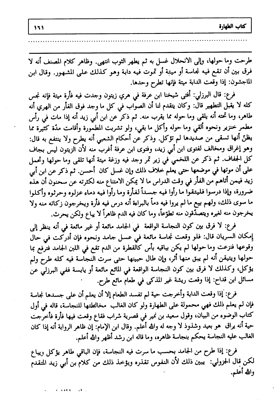 فرع : إذا طرح من الجامد بحسب ما سرت فيه النجاسة فإن الباقي طاهر يؤكل ويباع لكن قال الجزولي يبين ذلك لأن النفوس تقذره ويؤخذ ذلك من كلام بن أبي زيد المتقدم والله أعلم.