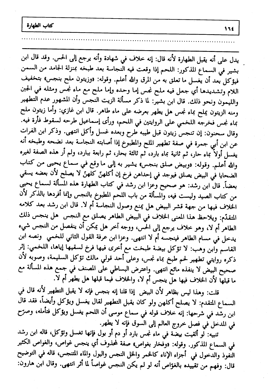 قلت: وهذا ليس بظاهر لأن البيض إذا قلنا إنه بنجس فإنه لا يقبل التطهير لأنه قال في السماع المتقدم لا يصلح أكلهن ولو كان يقبل التطهير لقال يغسل ويؤكل وأيضا فقد قال ابن رشد في شرحها: إنه خلاف قوله في سماع موسى أن اللحم يغسل ويؤكل فتأمله وصرح في المدخل في فصل خروج العالم إلى السوق فإنه لا يطهر.