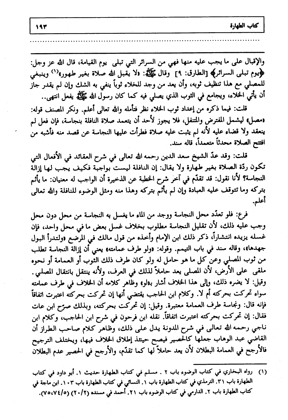 1 رواه البخاري في كتاب الوضوء باب 2. مسلم في كتاب الطهارة حديث 1. أبو داود في كتاب الطهارة باب 31. الترمذي في كتاب الطهارة باب 1. النسائي في كتاب الطهارة باب 103. ابن ماجة في كتاب الطهارة باب 2. الدارمي في كتاب الوضوء باب 21. أحمد في مسنده "2/20" "5/74، 75".