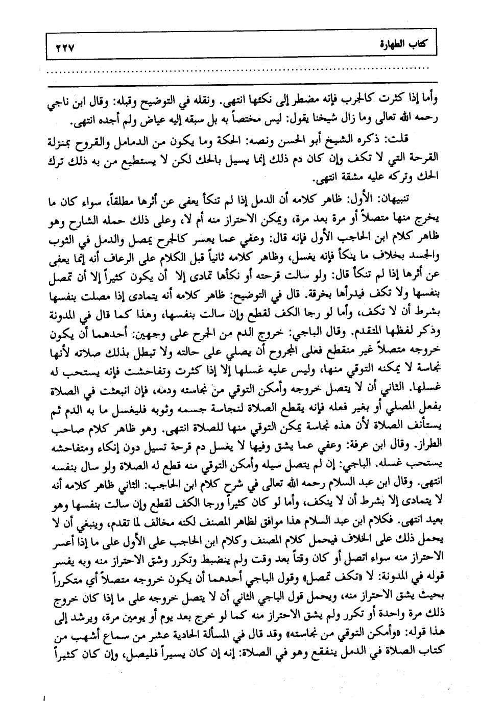 قلت: ذكره الشيخ أبو الحسن ونصه الحكة وما يكون من الدمامل والقروح بمنزلة القرحة التي لا تكف وإن كان دم ذلك إنما يسيل بالحك لكن لا يستطيع من به ذلك ترك الحك وتركه عليه مشقة انتهى.