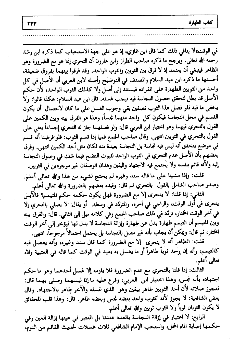 قلت: وإذا مشينا على ما قاله سند وغيره لم يحتج لشيء من هذا والله تعالى أعلم. وصدر صاحب الشامل بالقولبالتحري ثم قال وقيده بعضهم بالضرورة والله تعالى أعلم.