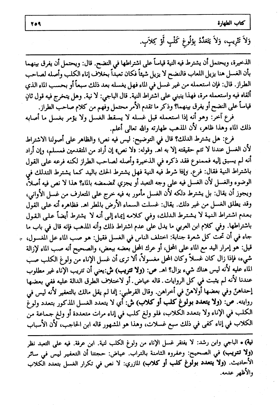 ولا تتريب ولا يتعدد بولوغ كلب أو كلاب.