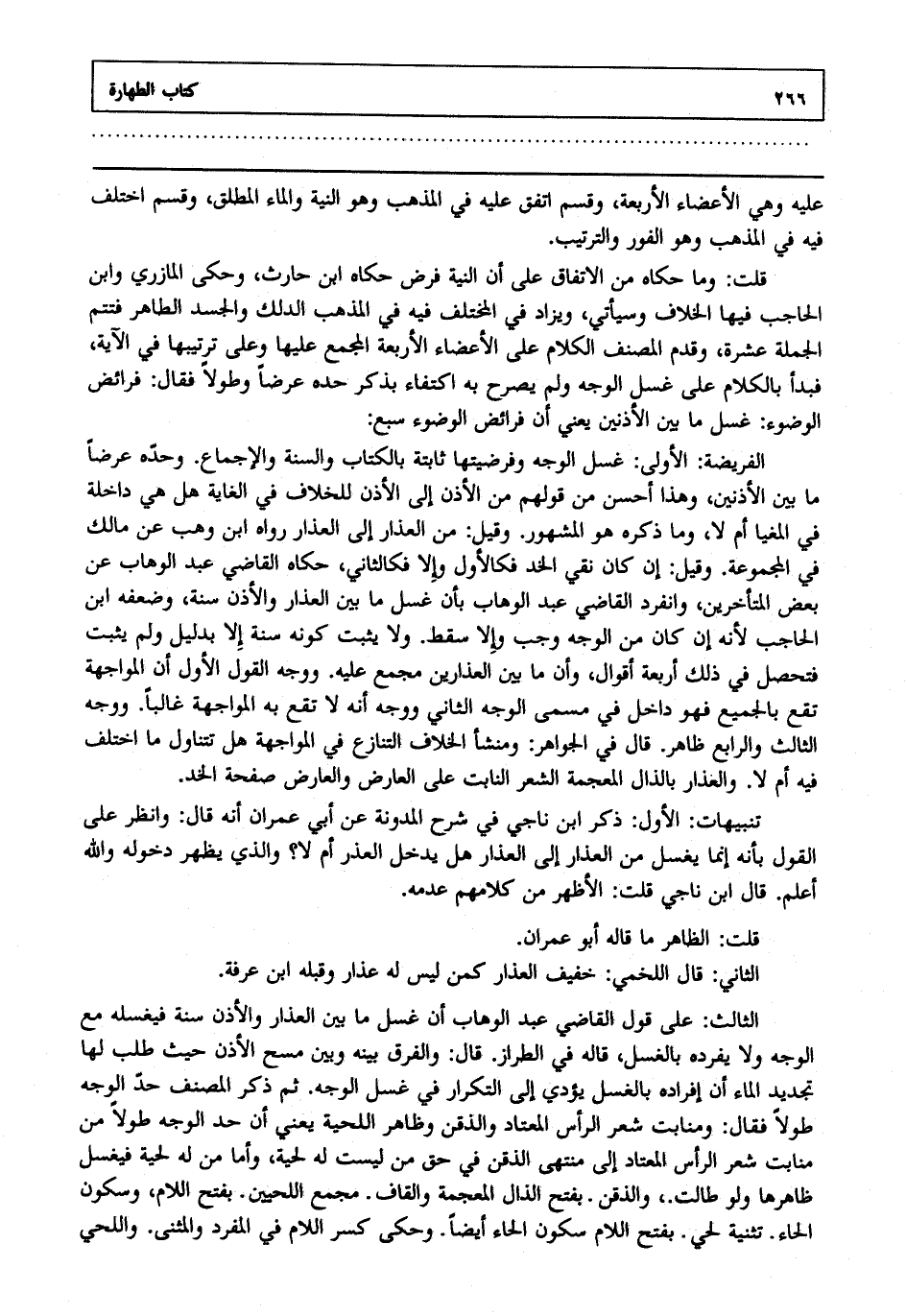 تنبيهات: الأول: ذكر ابن ناجي في شرح المدونة عن أبي عمران أنه قال وانظر على القول بأنه إنما يغسل من العذار إلى العذار هل يدخل العذر أم لا والذي يظهر دخوله والله أعلم. قال ابن ناجي: قلت: الأظهر من كلامهم عدمه.