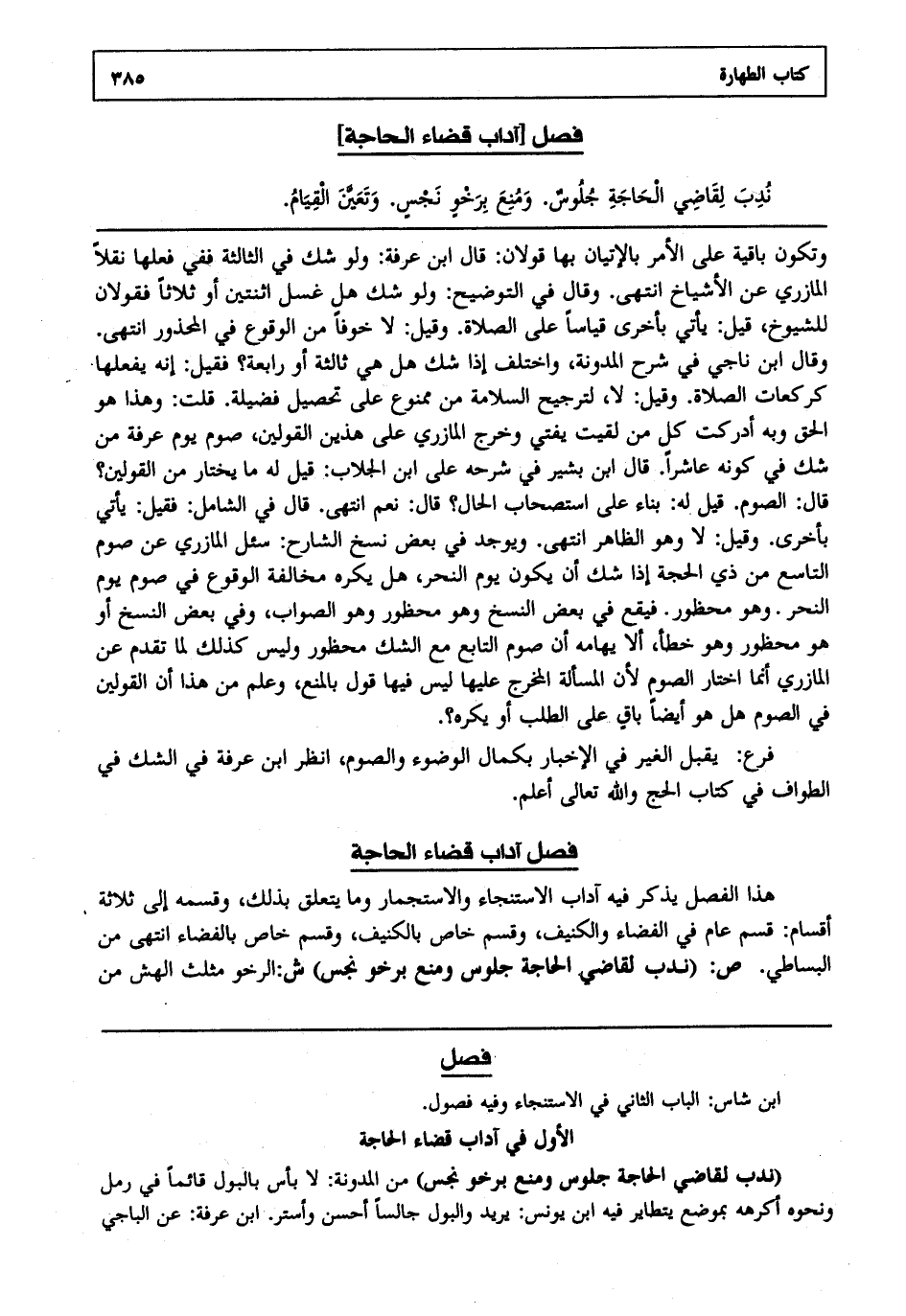 فصل آداب قضاء الحاجة