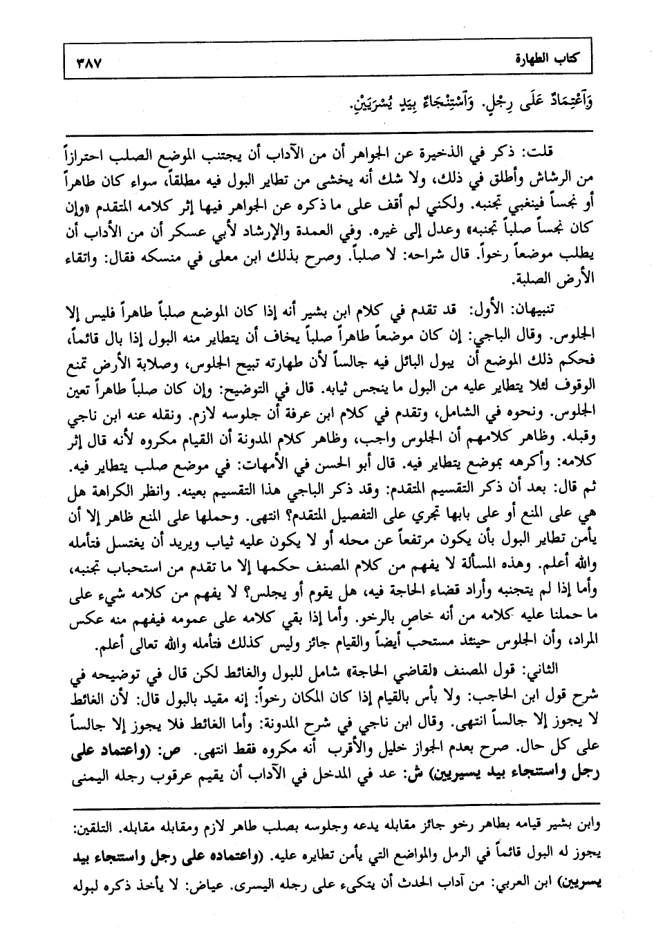 واعتماد على رجل، واستنجاء بيد يسريين.