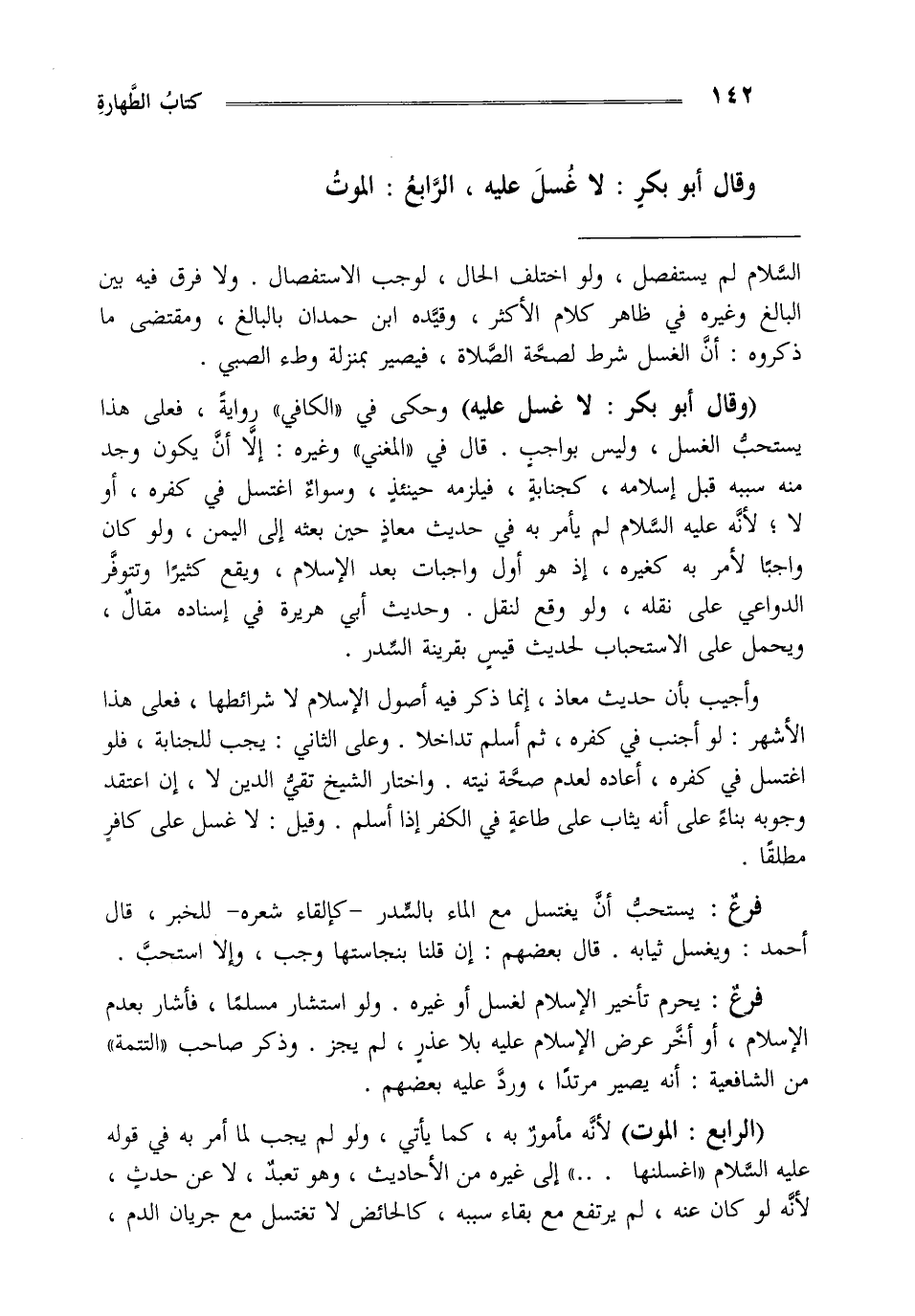 وقال أبوبكر لاغسل عليه ، الرابع: الموت