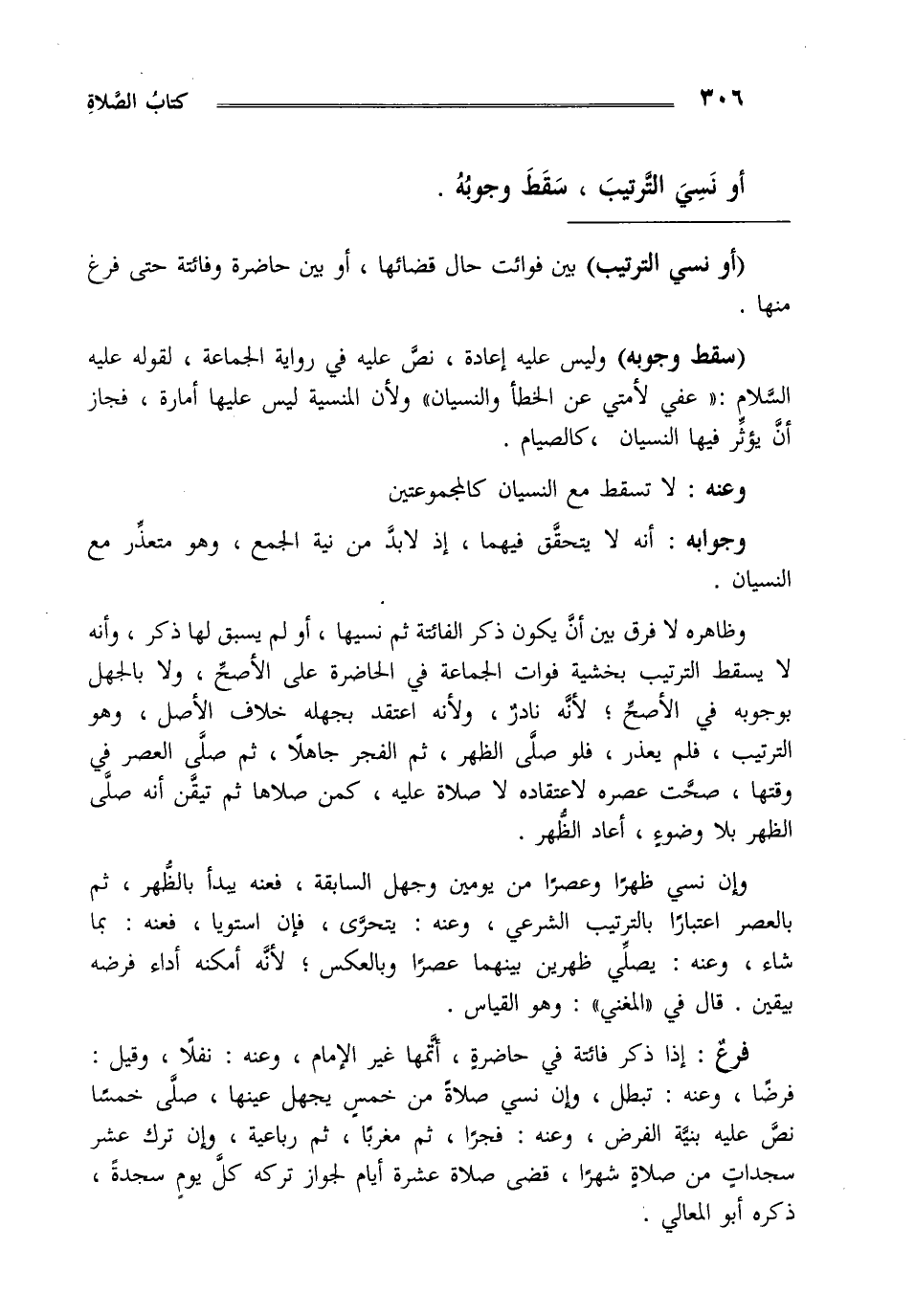 أو نسي الترتيب سقط وجوبه