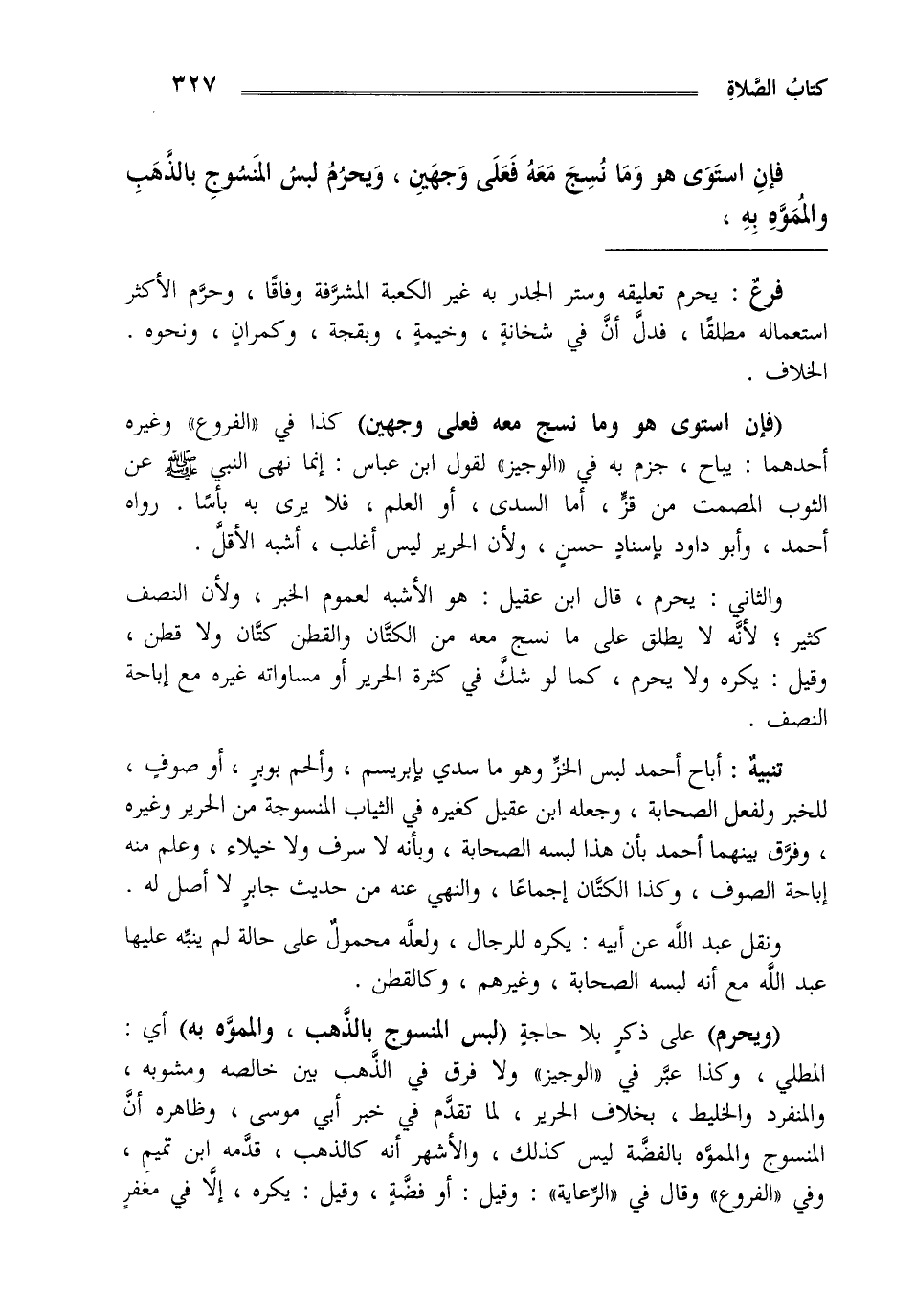 والثاني يحرم قال ابن عقيل هو الأشبه لعموم الخبر ولأن النصف كثير لأنه لا يطلق على ما نسج معه من الكتان والقطن كتان ولا قطن وقيل يكره ولا يحرم كما لو شك في كثرة الحرير أو مساواته غيره مع إباحة النصف.
